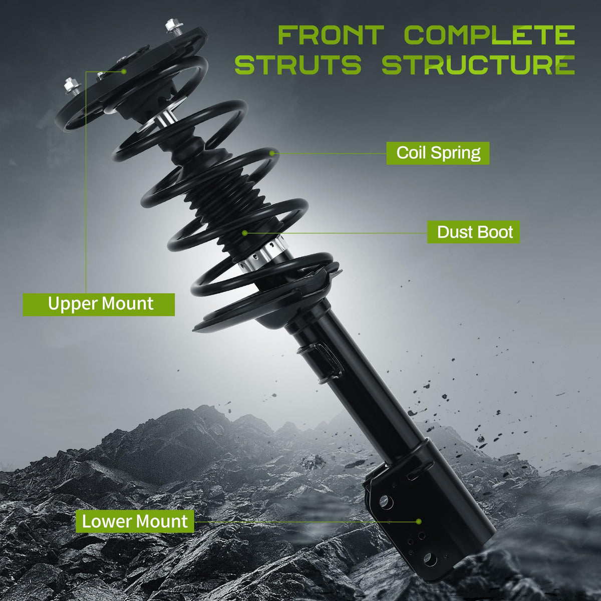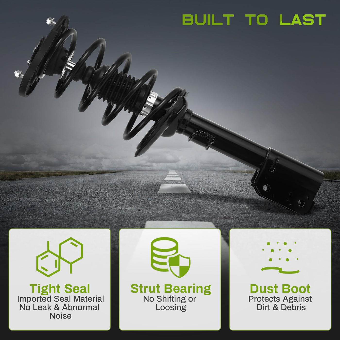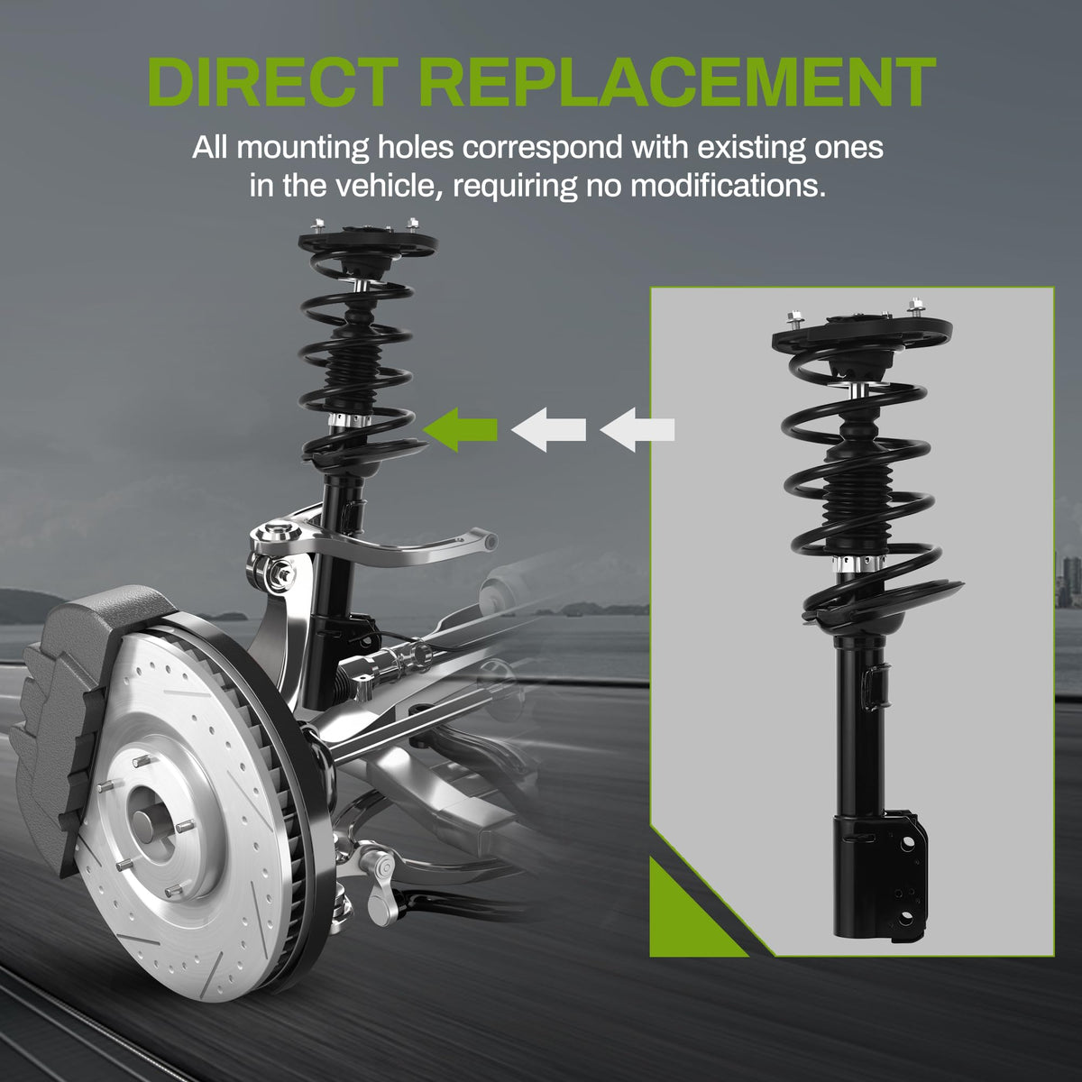 Vehicle Compatibility: The pair of quick struts is compatible with 2005-2009 Buick LaCrosse, 2004-2013 Chevy Impala, 2004-2007 Chevy Monte Carlo, 2004-2008 Pontiac Grand Prix | Safe & Simple Installation: Features buckle holes that correspond with existing ones in the vehicle, so it can be easily replaced without disassembling previous strut structure | Up to standard: Complete package includes struts, coil springs (if needed), mount, boot, bumper kit, spring seat, and isolator. All components are built to meet performance requirements | Replacement Part Numbers: 172471R, 172471L | Existing struts should be replaced if your vehicle: 1) makes abnormal sounds, 2) dips when carrying heavy loads or driving on poor roads, 3 suffers tire wear, 4) is difficult to control, 5) has poor stability(NOTE: Professional installation would be highly recommended)