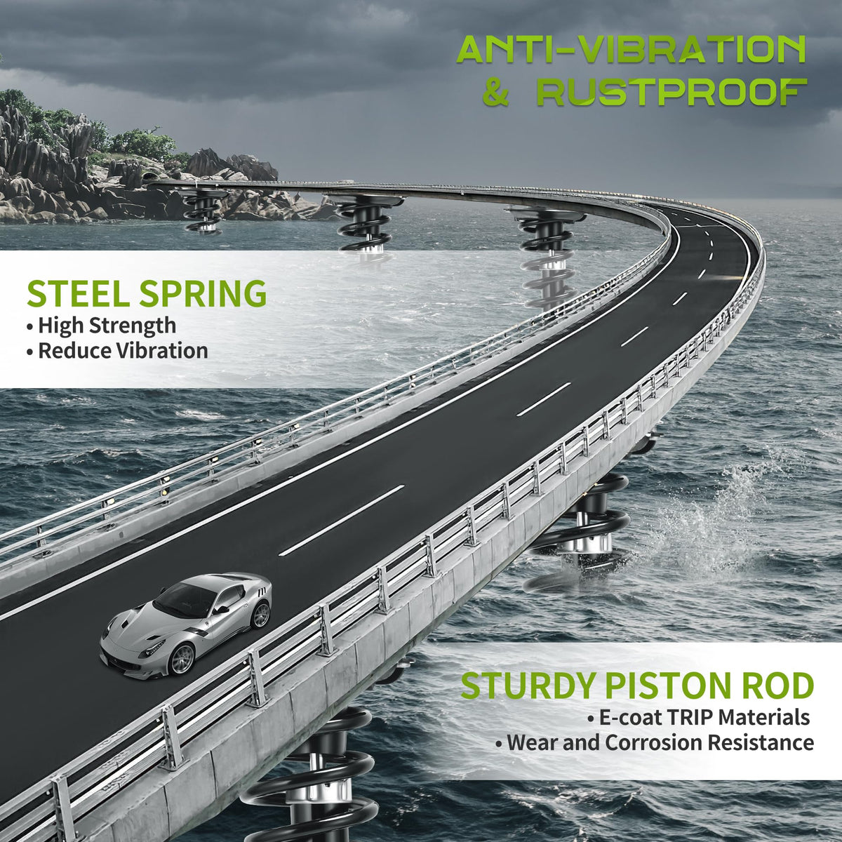 Vehicle Compatibility: The pair of quick struts is compatible with 2009-2013 Corolla, 2009-2013 Matrix, 2009-2010 Pontiac Vibe | Safe & Simple Installation: Features buckle holes that correspond with existing ones in the vehicle, so it can be easily replaced without disassembling previous strut structure | Up to standard: Complete package includes struts, coil springs (if needed), mount, boot, bumper kit, spring seat, and isolator. All components are built to meet performance requirements | Replacement Part Numbers: 172599R, 172599L | Existing struts should be replaced if your vehicle: 1) makes abnormal sounds, 2) dips when carrying heavy loads or driving on poor roads, 3 suffers tire wear, 4) is difficult to control, 5) has poor stability(NOTE: Professional installation would be highly recommended)