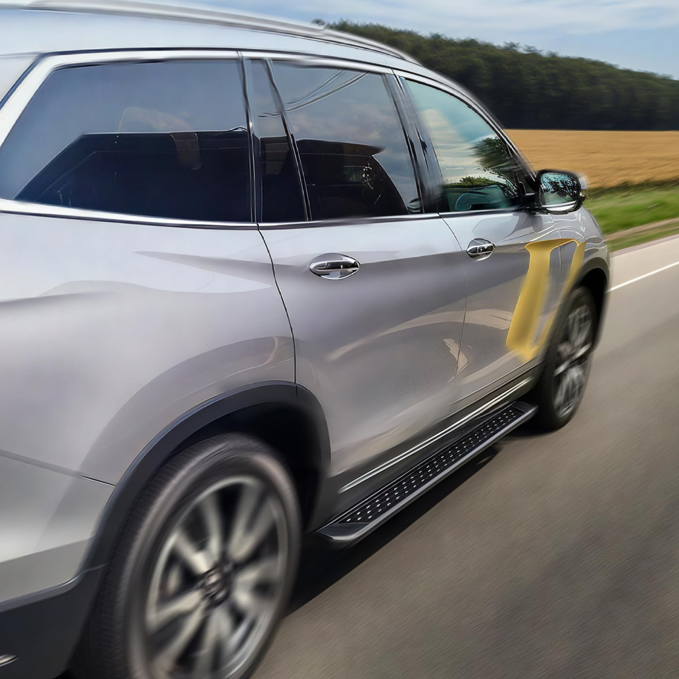 Compatibility: Compatible with 2016-2022 Honda Pilot SUV; Features solid construction coated in a durable finish for lasting strength and corrosion resistance | Sturdy and Durable: The durable, UV-resistant aluminum alloy material keeps product shiny and functional for years to come; The steps offer non-slip, stable steps for convenient entry into your vehicle; Each side can handle up to 450lbs | Premium Quality: These superior nerf bars provide a massive upgrade in style and functionality; They offer all-encompassing protection to your rocker panels from rocks, debris and other off-road obstacles; Also adds a bolder look to your truck. | Easy Assembly: Features easy installation with no drilling required; Comes with detailed graphics and text instructions | Perfect Fit: The pedal covers are designed to be the perfect length and height for your vehicle, ensuring that they look great once installed and won't interfere with your driving experience. You'll love how they enhance the overall appearance of your car while making it easier to get in and out