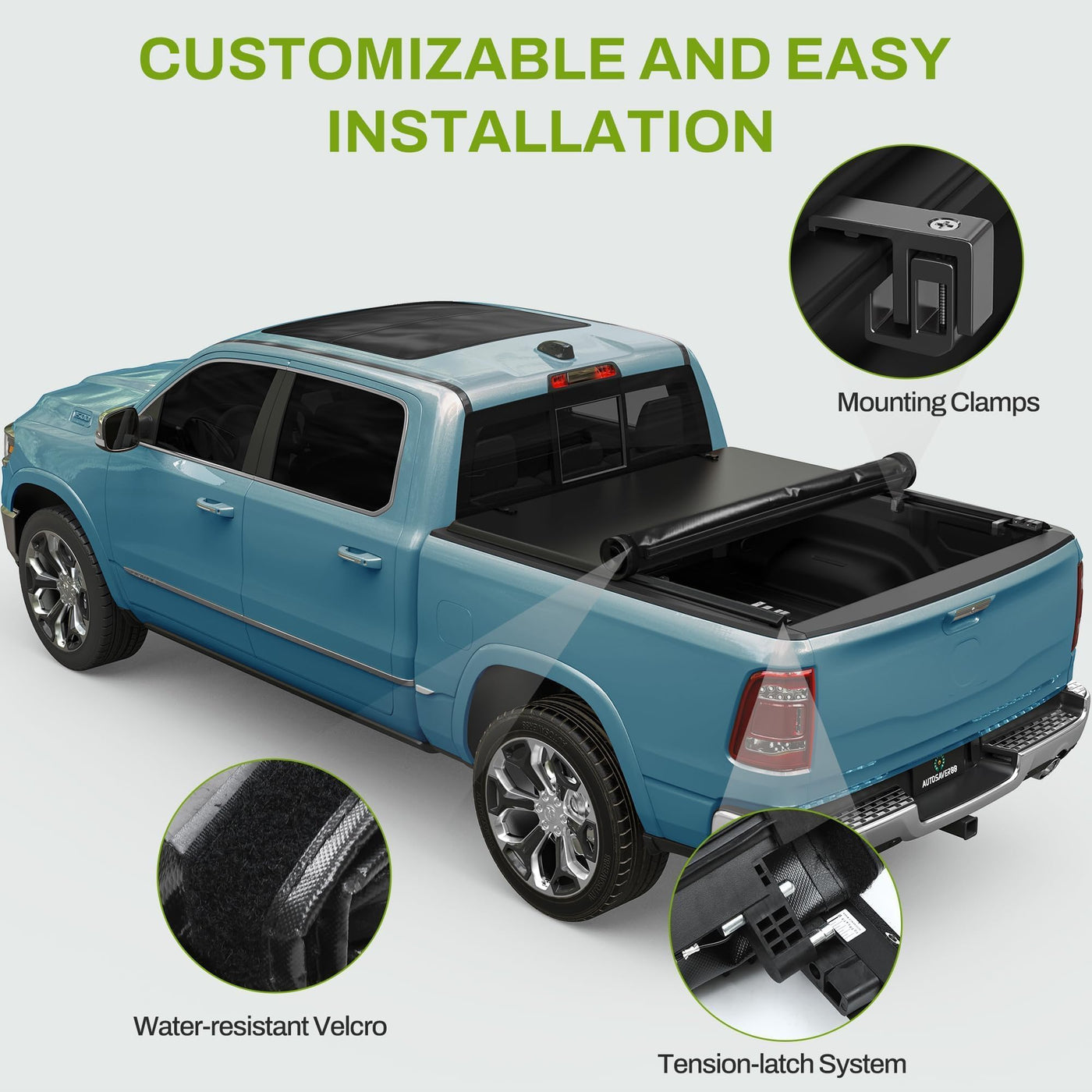 Autosaver88 Soft Roll Up Truck Bed Tonneau Cover Compatible With Dodge Ram 1500 (Classic Only) 2002-2024, Fit For Dodge Ram 2500
