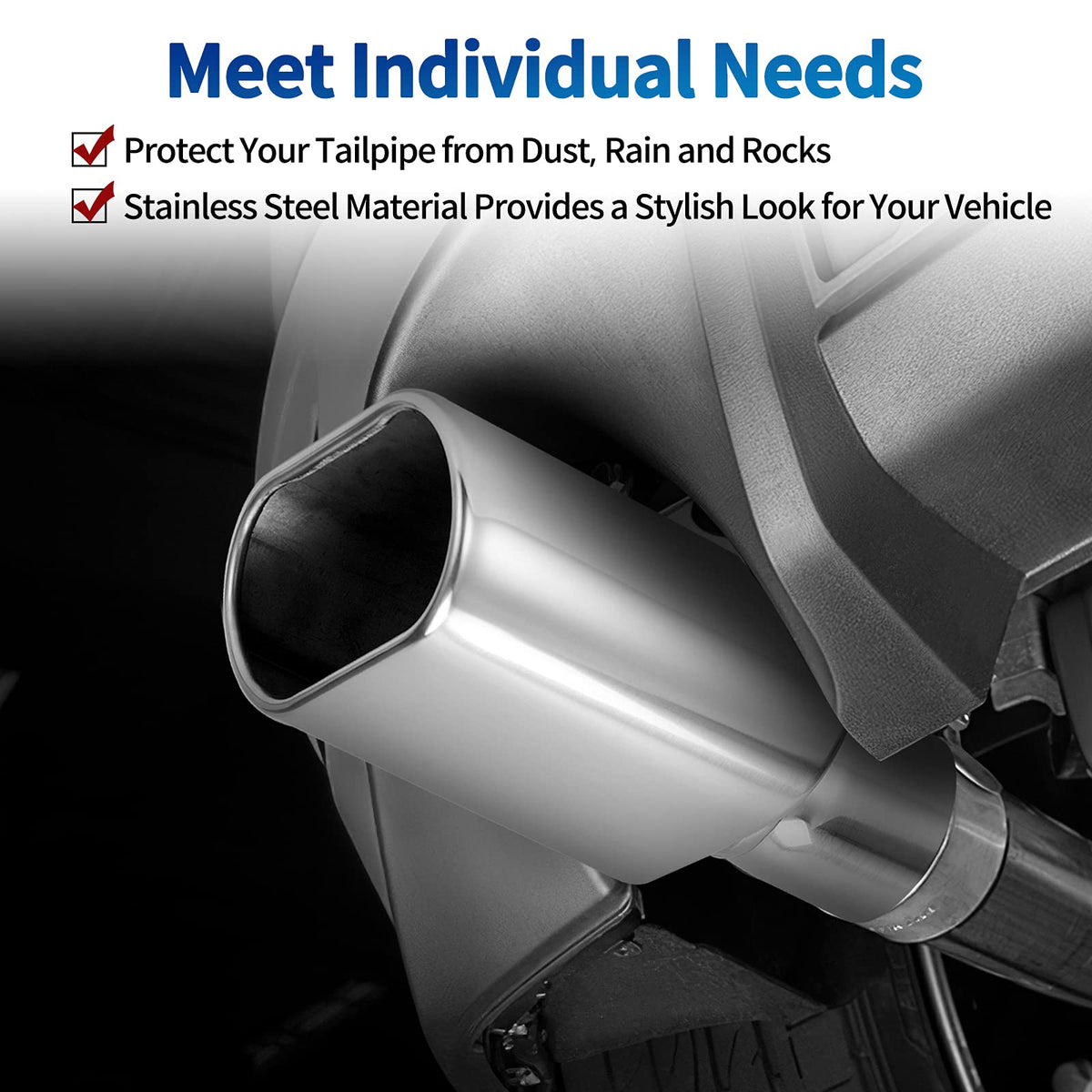 Q: What material is the exhaust tip made of?A: The exhaust tip is made from high-grade stainless steel, which provides excellent resistance to heat, rust, and deformation.
