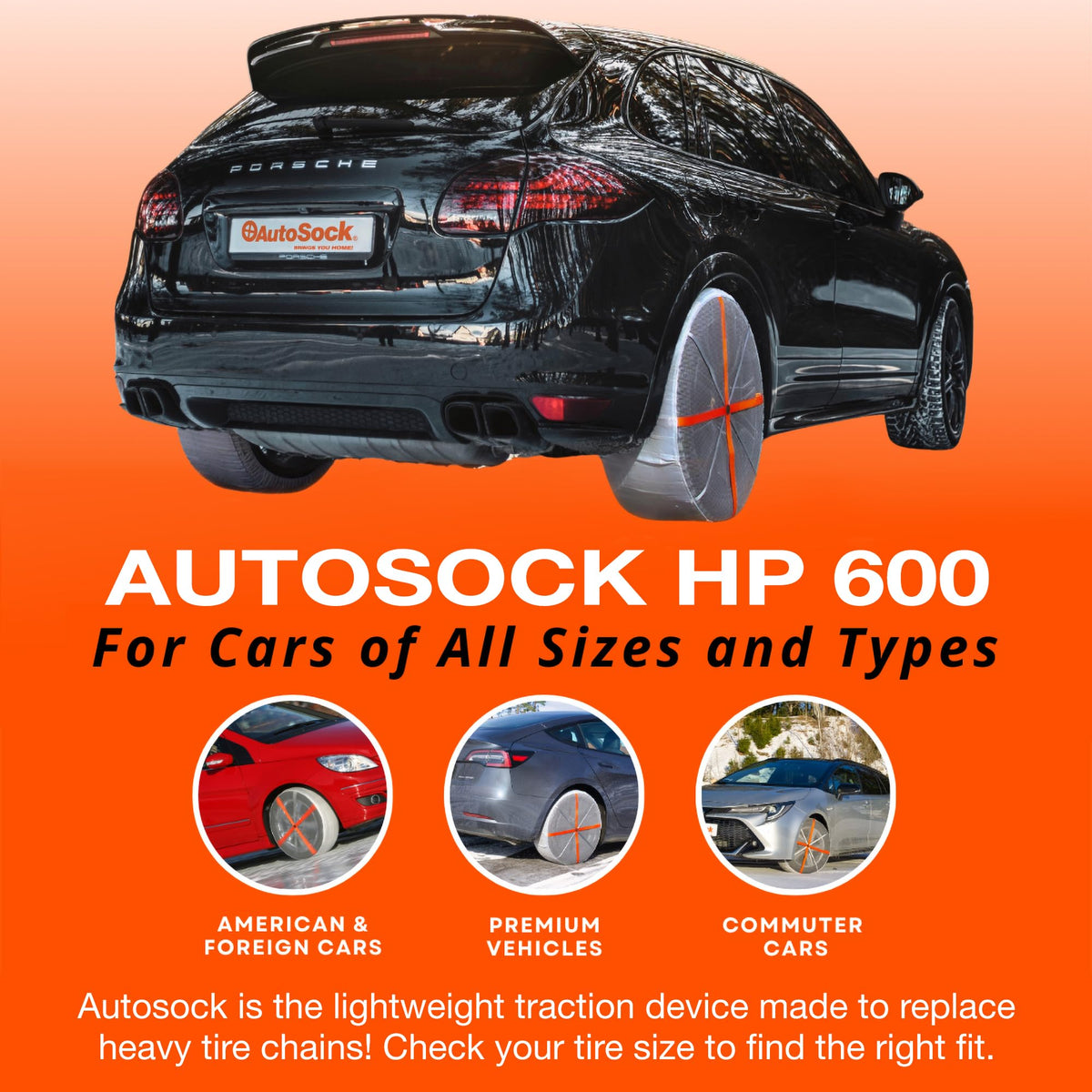 AUTOSOCK HP600 Snow Socks for Passenger Vehicles - Pack of 2, Tire Traction Aids for Winter Driving