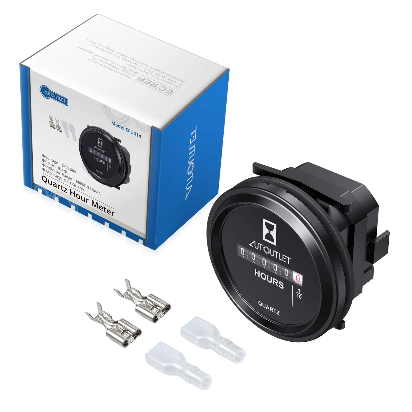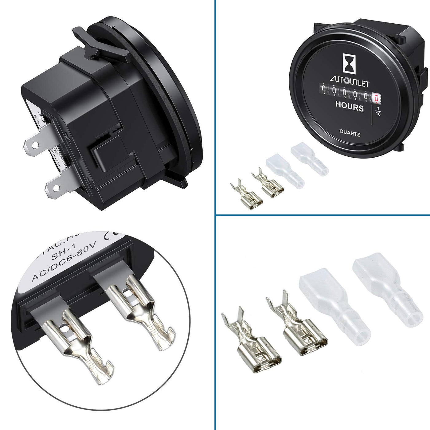 AUTOUTLET Quartz Hour Meter 6V-80V, 12 Volt Hour Meter Round Waterproof Hour Gauge for Boat Auto ATV UTV Snowmobile Lawn Tractors Generators Automotive Replacement Hour Meter Gauges