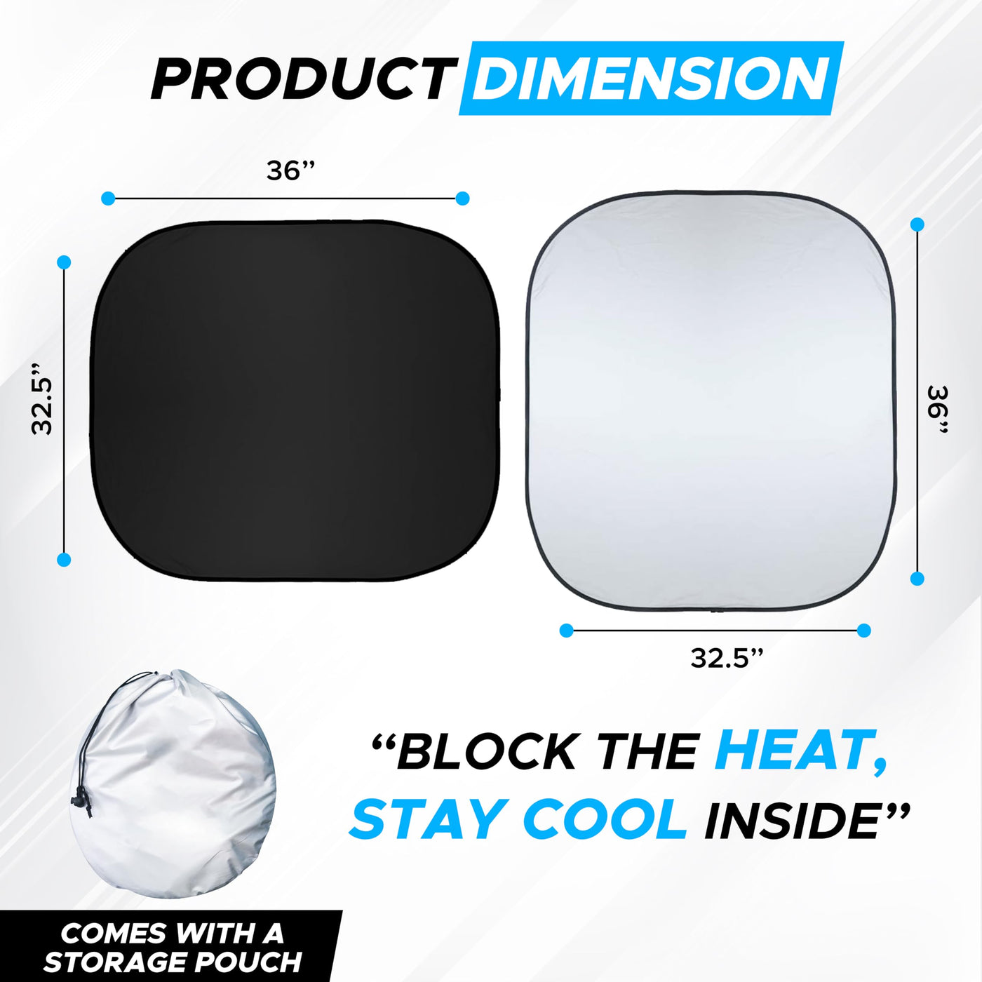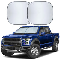 Autovir's 2 Piece Truck Windshield Sun Shade offers superior protection against the sun, heat, and harmful UV rays, safeguarding your vehicle's interior. Its foldable design makes it easy to store and deploy, keeping your car clutter-free. Custom-fit for the front windshield, it ensures comprehensive coverage. With easy installation, it shields your car from glare and excessive heat effortlessly. Measuring 36''x32.5'', it fits a range of car models, providing ample coverage for most standard-sized windshields.