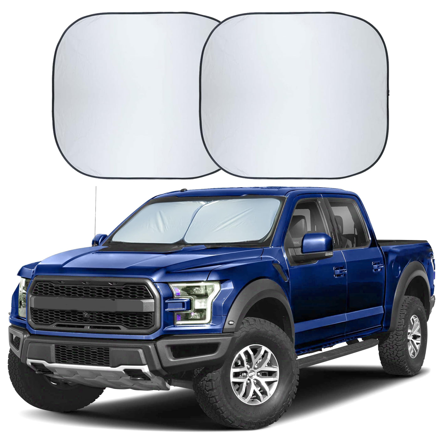 Autovir 2 Piece Truck Windshield Sun Shade Foldable | Front Windshield Shade for Superior Sun, Heat, and UV Rays Protection | Sq