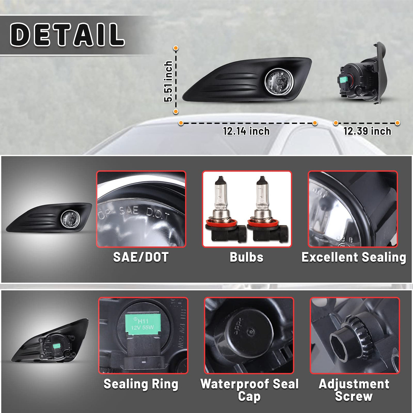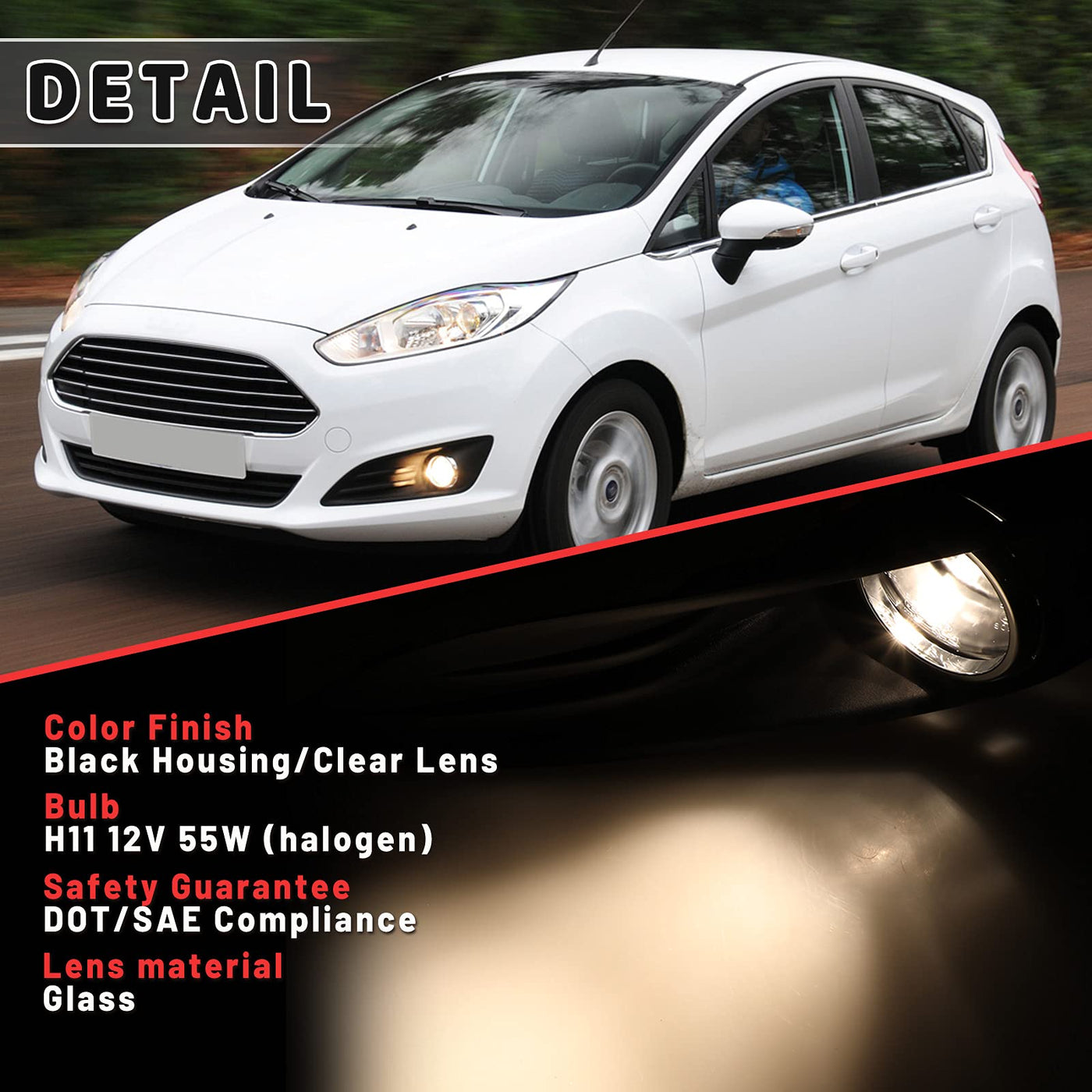 Autowiki Fog Lamp For 2014-2018 Ford Fiesta Fog Lights Assemblies For 2019 Ford Fiesta S & Se Models With Wiring Kit 1 Pair