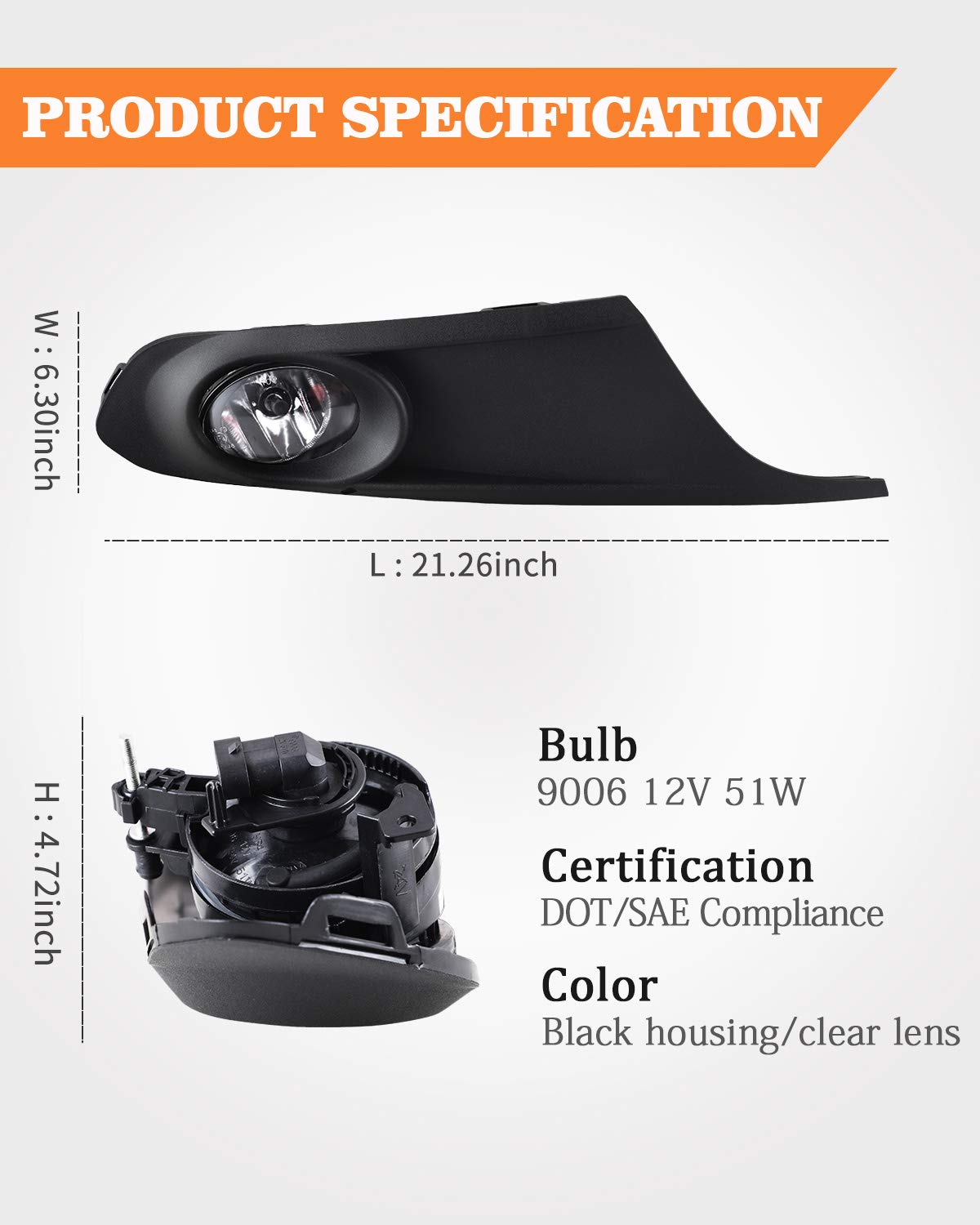Q: What type of bulbs do the fog lights use?A: The fog lights come pre-installed with a pair of 9006 12V 51W bulbs, which provide bright illumination and enhance visibility during foggy conditions.