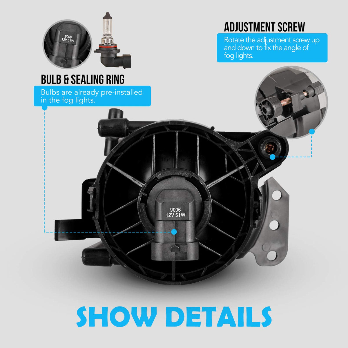 Q: What type of bulbs do these fog lights use?A: The AUTOWIKI Fog Lights come with a pair of 9006 bulbs, rated at 12V 51W. These bulbs are included in the fog light assembly and are designed to provide bright illumination, enhancing visibility in foggy conditions.