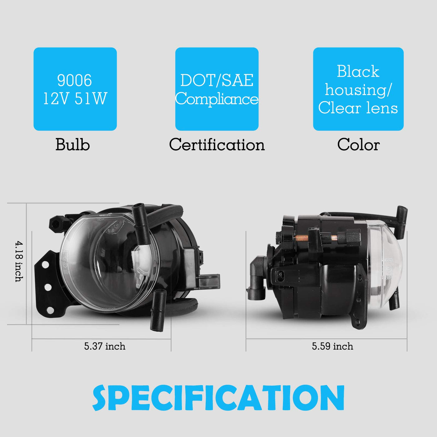 Specification Quantity Sold: 2 Pack Bulb Type: 9006 12V 51W Certification: DOT/SAE Compliance Color Finish: Clear Lens Wiring Harness: Not Included Replaces Original (OE) Part #:R: 63176910792,63176920704;L:63176910791,63176920703 Partslink Number:R:BM2592124,BM2593123;L:BM2592123,BM2592124