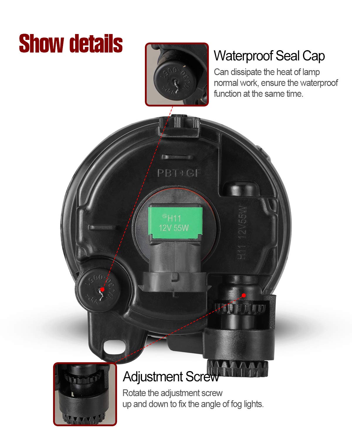 Q: What type of bulbs do these fog lights use?A: The fog lights come equipped with H11 12V 55W bulbs, providing bright illumination to enhance visibility during foggy or low-light conditions.