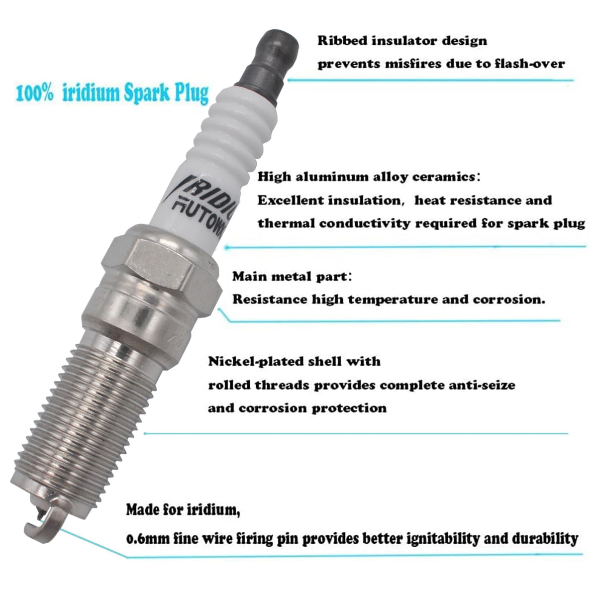 Autowxjq Iridium Spark Plugs are engineered to deliver both high performance and long life, The ultra-fine wire design and laser welded tapered ground electrode deliver optimum performance, while the Iridium center electrode and Iridum tipped ground electrode help it to go the distance. Autowxjq Iridium Spark Plugs are pre-gapped at the factory , for simple, easy installation right out of the box. Unlock the performance in your engine with Autowxjq Iridium Spark Plugs