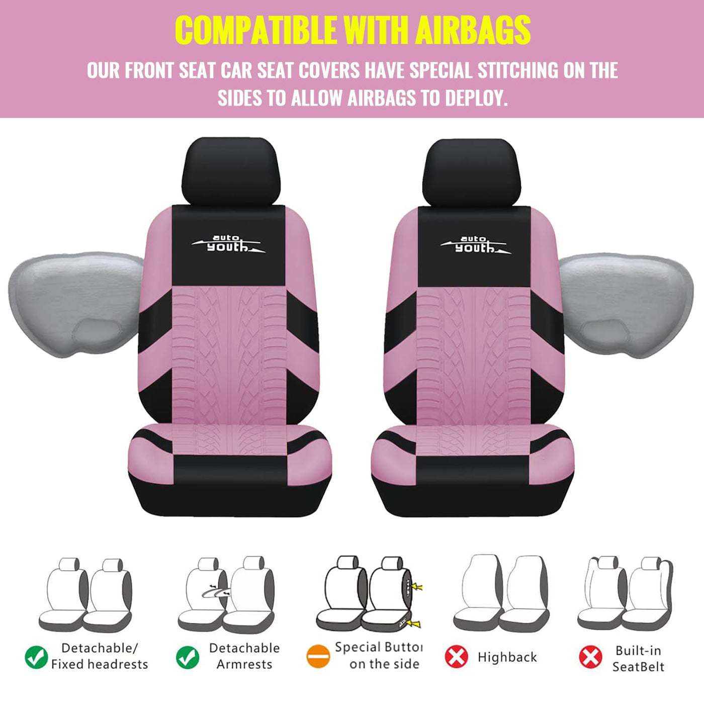 Autoyouth Car Seat Covers For Front Seats, Breathable And Washable Bucket Seat Covers For Cars, Truck, Suv, Vans Airbag Compatible Automotive Interior Covers, Pink