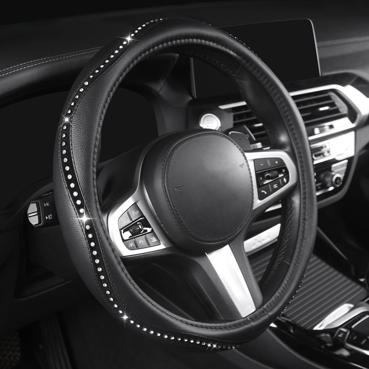 Autoyouth Steering Wheel Cover, Crystal Studded Rhinestone Bling Styling For Car, Suv, Truck Heavy Duty, Anti-Slip, Excellent Grip Standard Size 15 Inch…