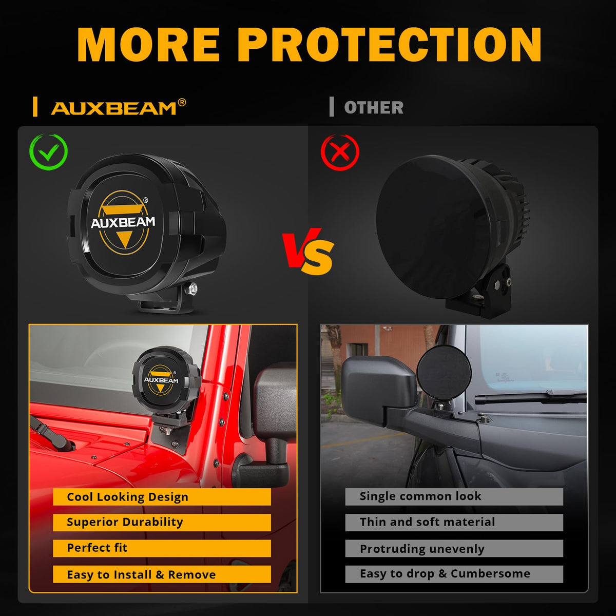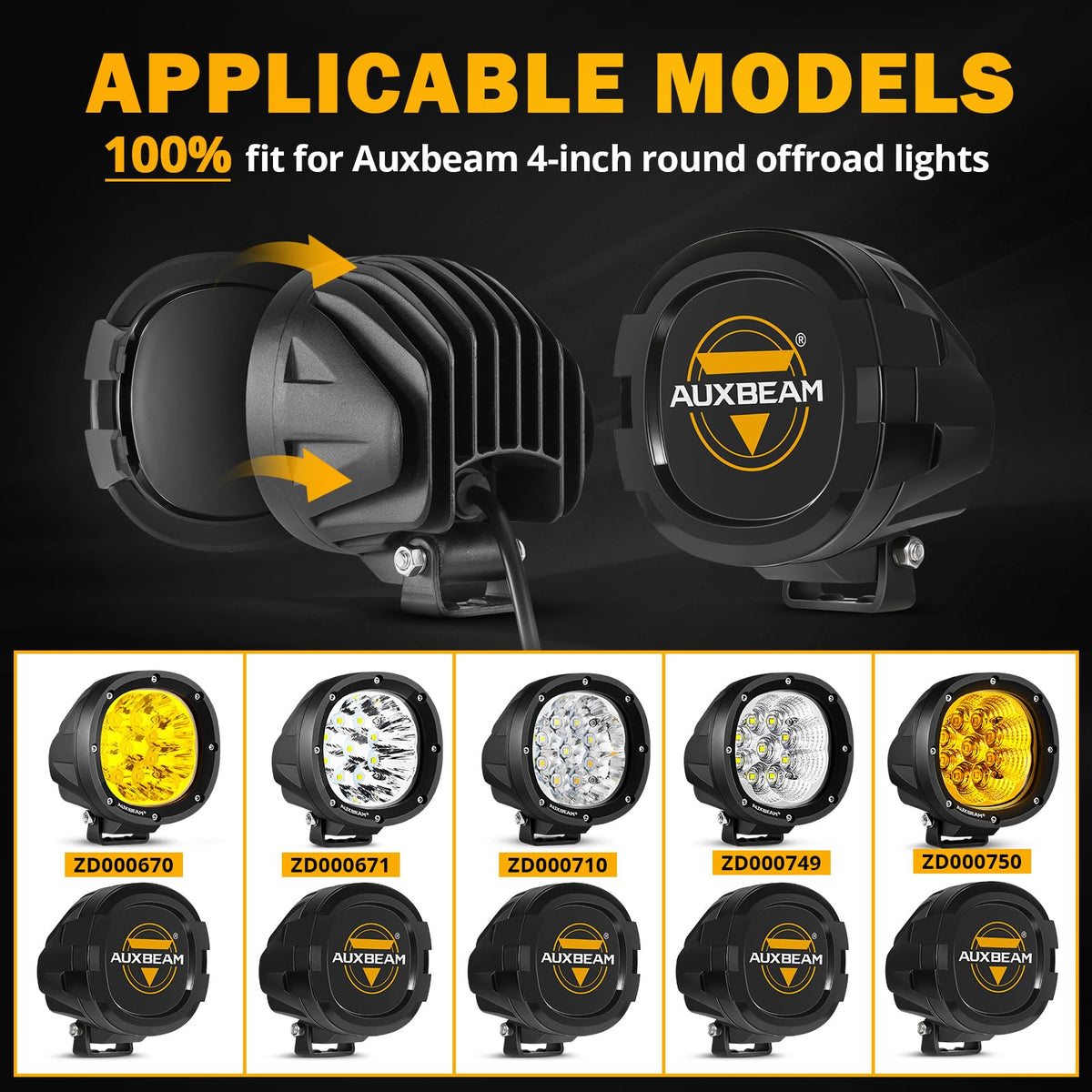 Auxbeam 4 Inch Led Pod Covers, 2Pcs Black Round Offroad Driving Work Lights Pc Protective Covers, Light Bar Lens Covers Waterpro