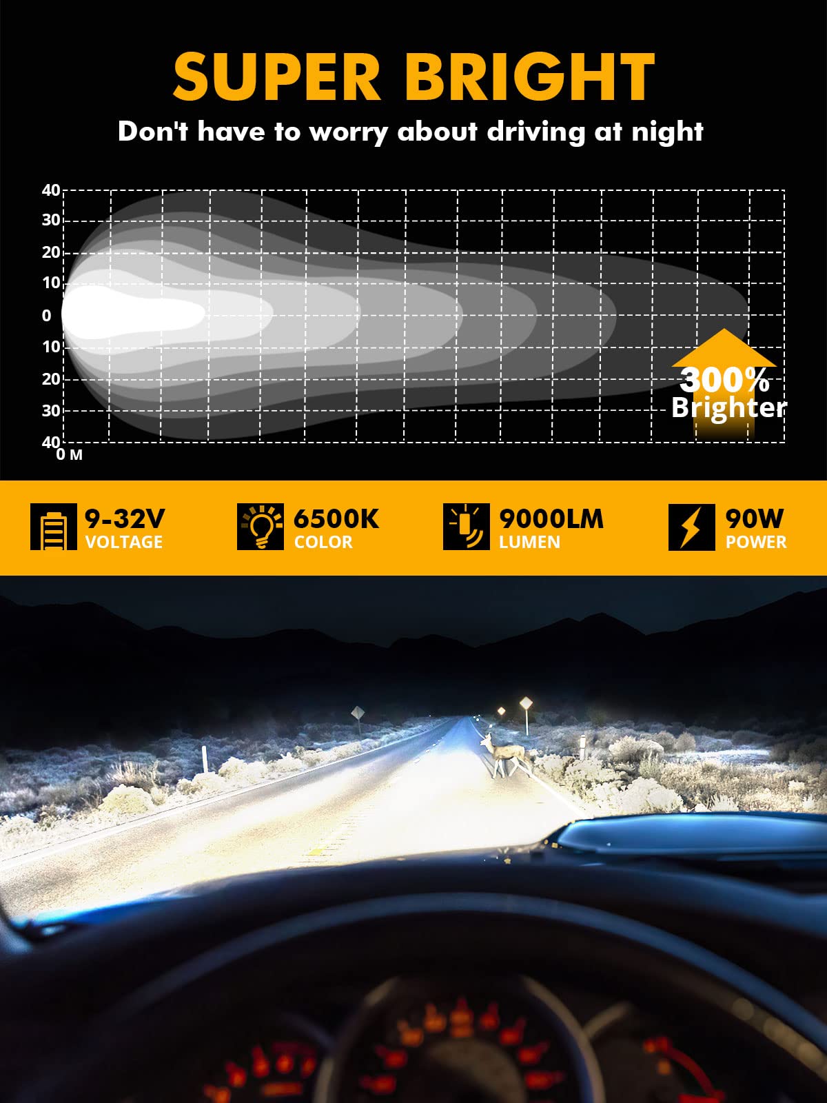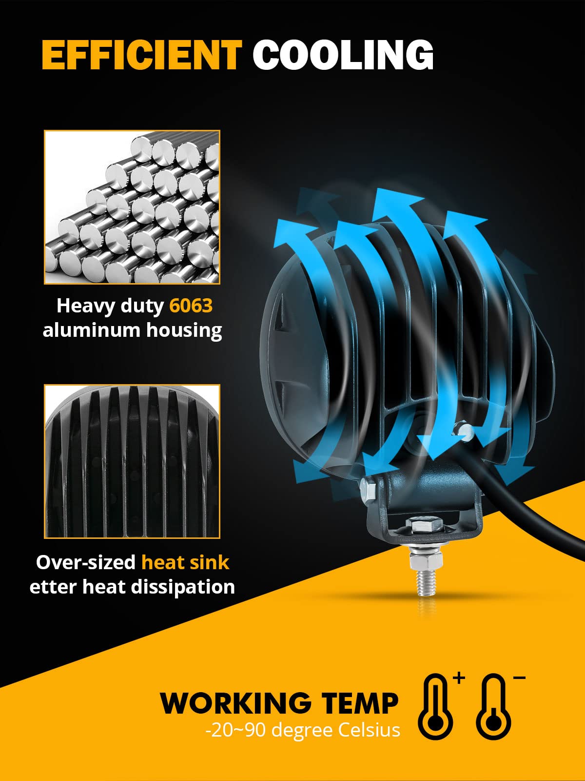 Auxbeam 4 Inch Round Led Light Pods, 90W Offroad Flood White Light Bar, Super Bright 9000Lm Driving Work Light With Dt Plug Wiri
