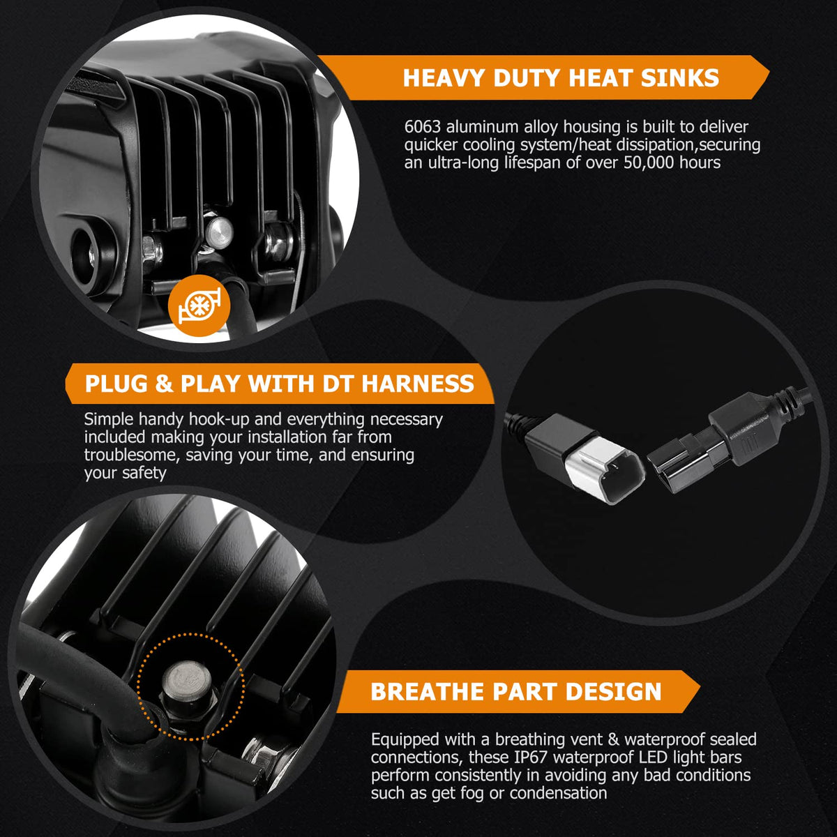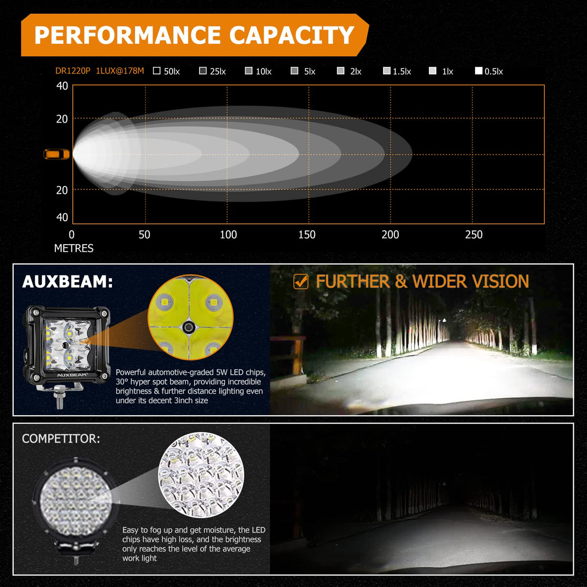 Auxbeam Fa Series Spot Beam Led Pod Lights, 3 Inch 40W Cube Offroad Spot Light, With Dt Wiring Harness, Driving Auxiliary Ditch