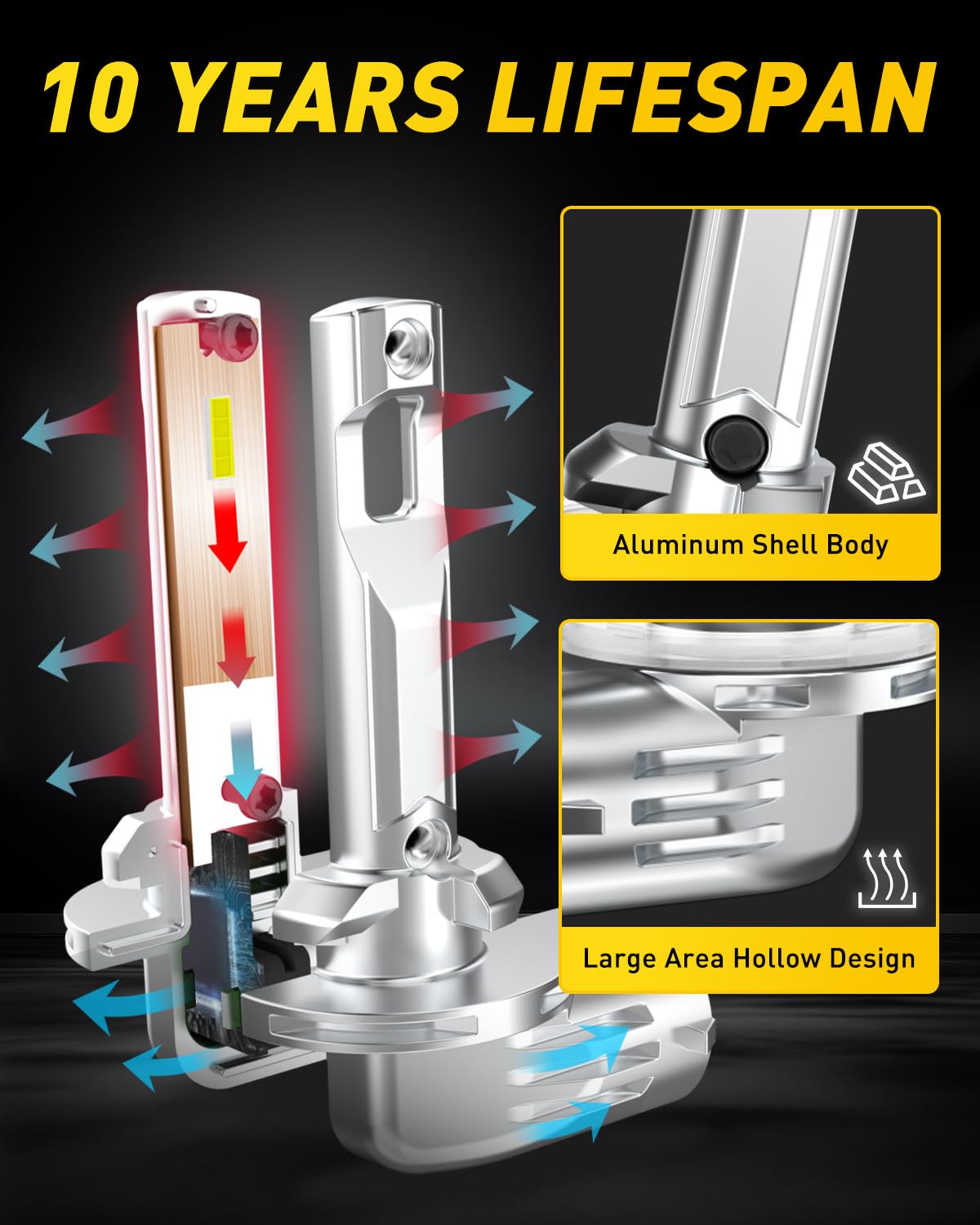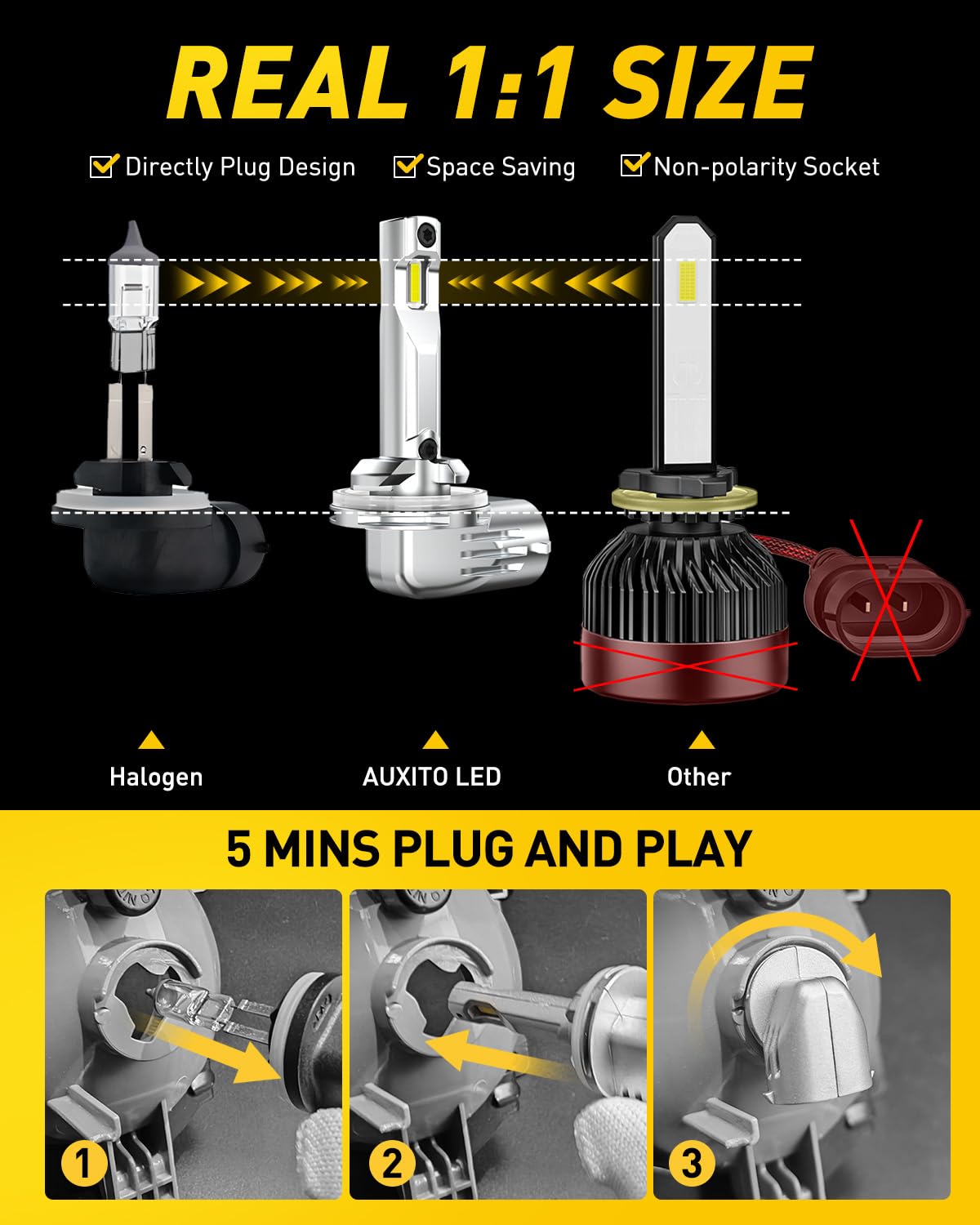 Auxito 881 Led Fog Light Bulbs, 16,000Lm 500% Super Brighter, 10 Years Lifespan, Wireless 1:1 Size Plug-N-Play, 100% Perfect Ins