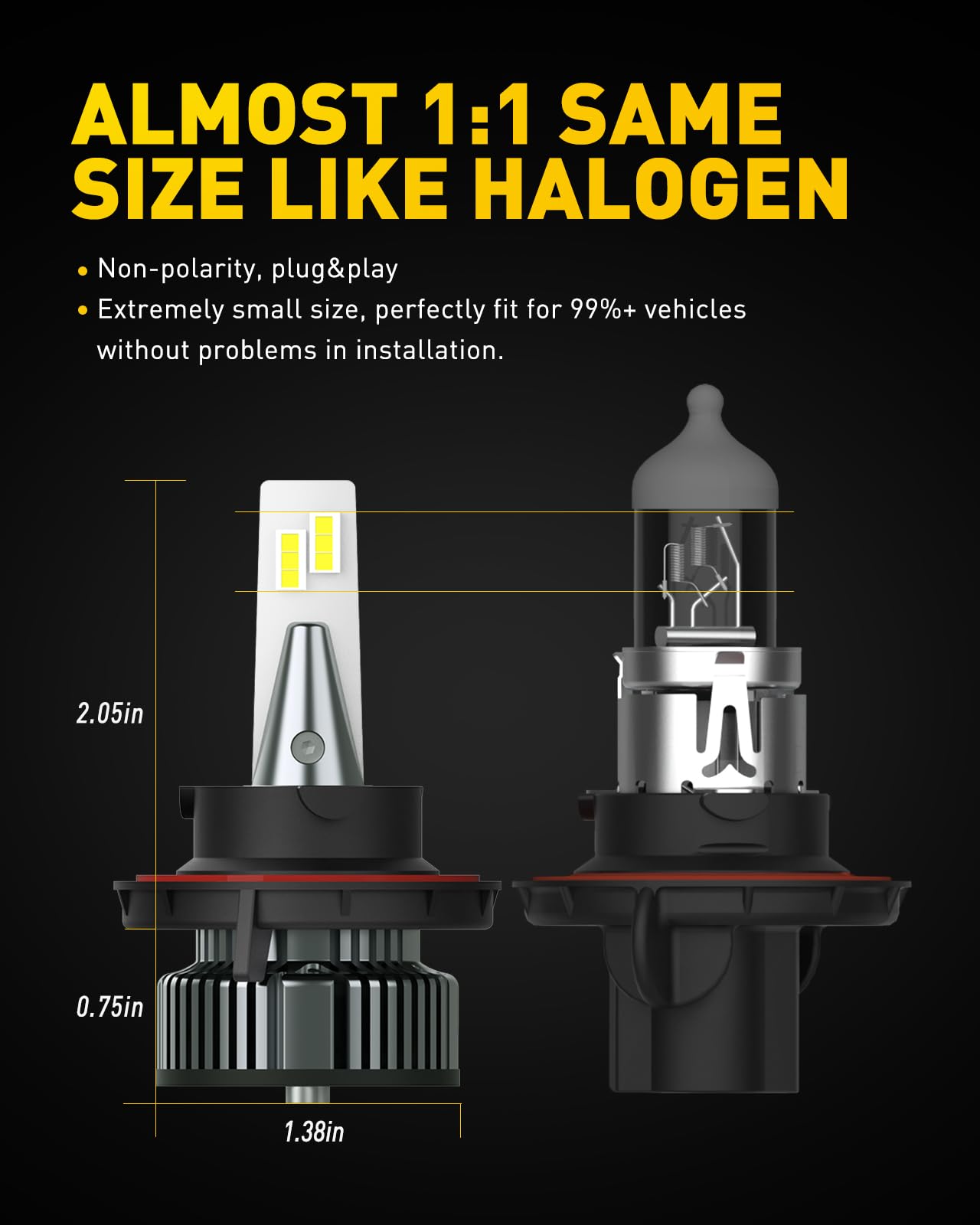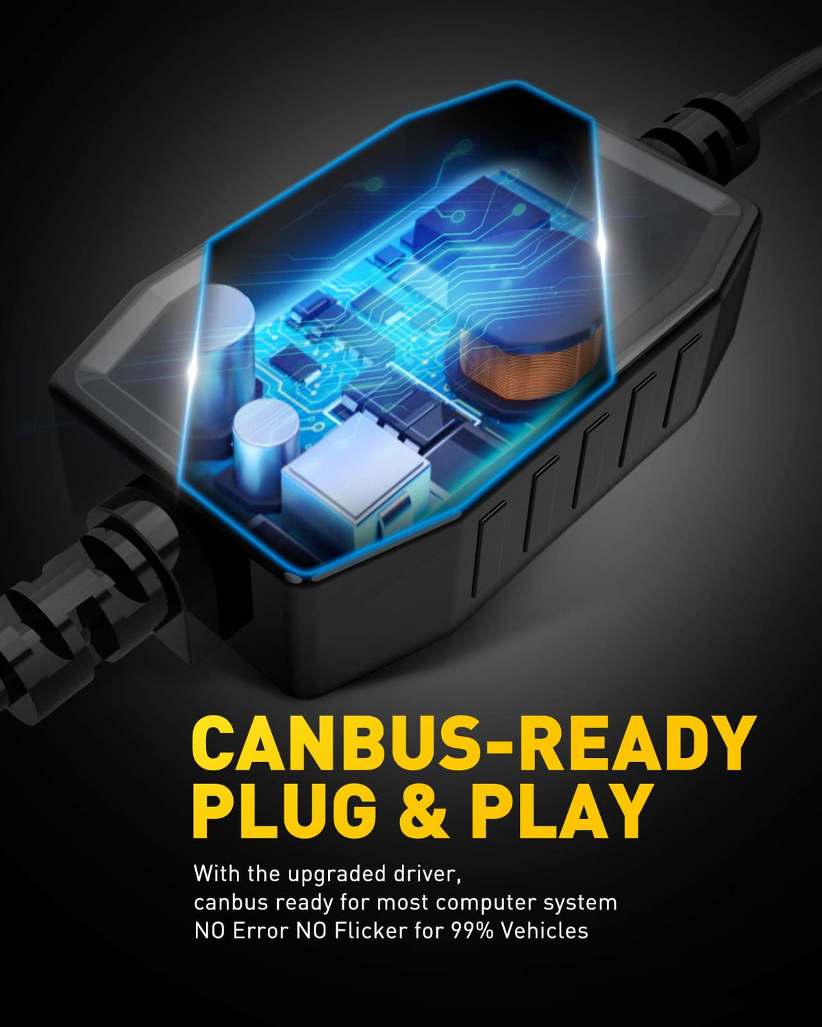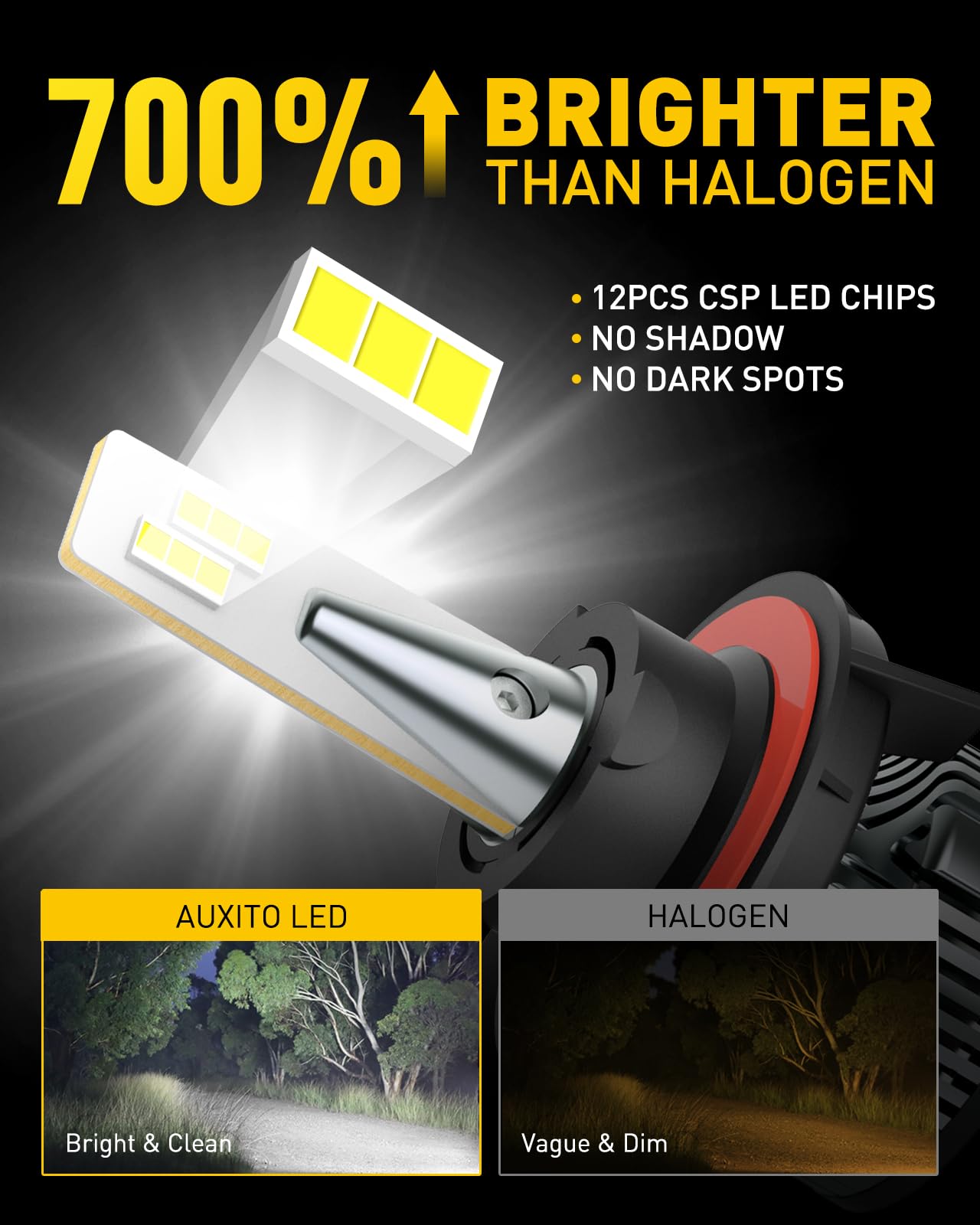 Enhanced Brightness: AUXITO H13 LED fog bulbs adopt customized light chips. 110W per set, 700% brighter than stock H13 bulbs. 6500K cool white. Improve your vision in different weather condition | Ideal Light Beam: The closer the size and the filament spacing to the halogen bulb, the better the beam pattern. AUXITO take this philosophy into the design of the H13/9008 LED bulbs, so the bulbs can produce the ideal beam for safer experience | Can-bus Design: Built-in smart driver making auxito 9008 fog bulbs compatible with most of vehicles