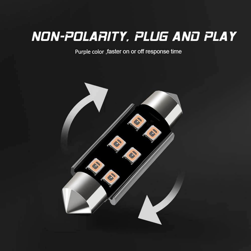 Brightest Auxlight 41Mm 1.61 Festoon 211-2 212-2 578 569 214-2 Led Bulbs Purple Specifications: Led Type: 6Pcs 2835 Smd Chips, Voltage: Dc 12V, Power: 1.7W/Pc, Lumen: 300Lm/Pc, Current: 0.110.01A, Dimensions: 1.61Inch(41Mm) * 0.47Inch (12Mm), Lifespan: Up To 30000 Working Hours, Color: Purple (Set Of 6) Important Notice!!! ?Fit Sockets: 211-2, 212-2, 578, 569, 214-2, 2112, 2122, 2142, 576, 560 Etc. ?Please Check Your Vehicles Owners Manual Or The Original Bulb To Confirm The Correct Bulb Size You Need Before Placing The Order. ?The Filter System May Not Be 100% Accurate Or Up To Date. If You Are Not Sure Which Bulb Size That Your Vehicle Requires, Please Google ''Philips Automotive Bulb Look-Up.'' Warranty: ?We Offerone Year Hassle-Free Warranty From Date Of Purchase On Item(S) Damaged During Delivery Or Have A Confirmed Manufacturer Defect. ?Friendly Customer Service Responses Within 24 Hours During The Business Days.