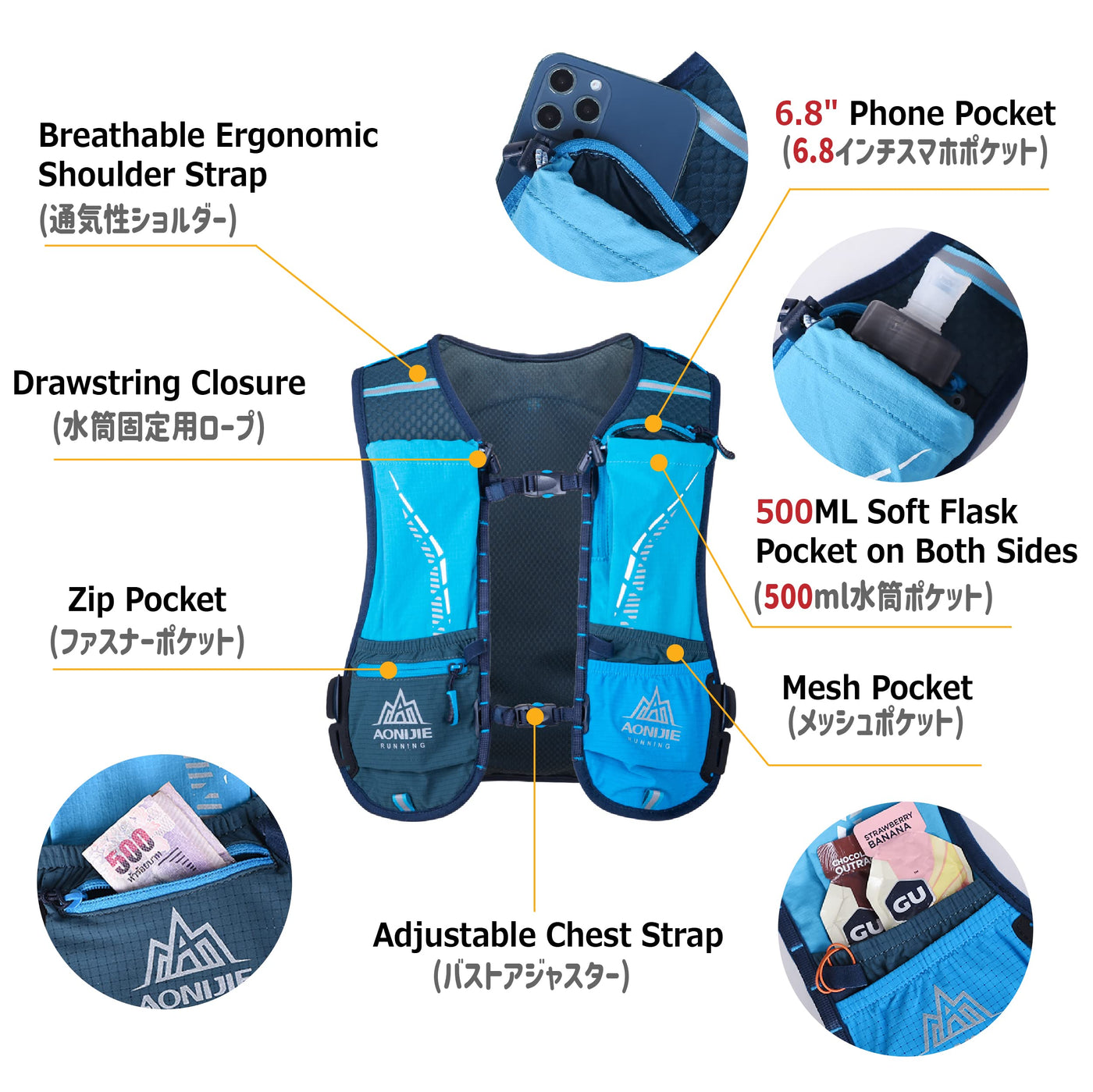 Azarxis Hydration Backpack Pack, 5L Running Hydration Vest For Men And Women, With Phone Pocket, Lightweight, Fit For Marathon Trail Race, Hiking, Climbing (Hydration Pack (Blue) X1)