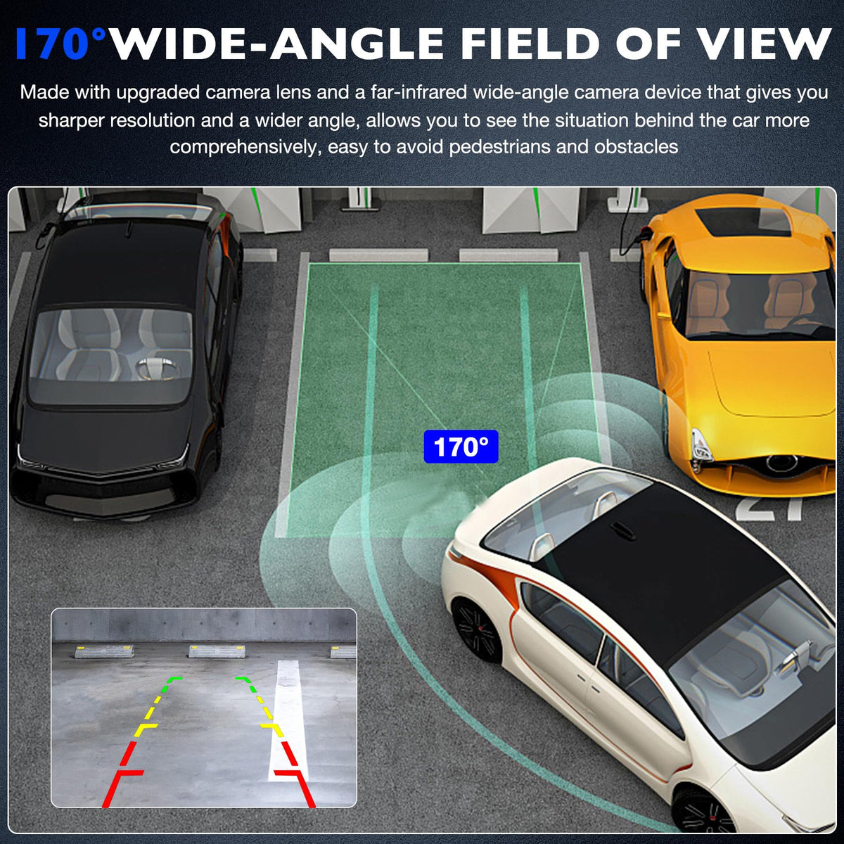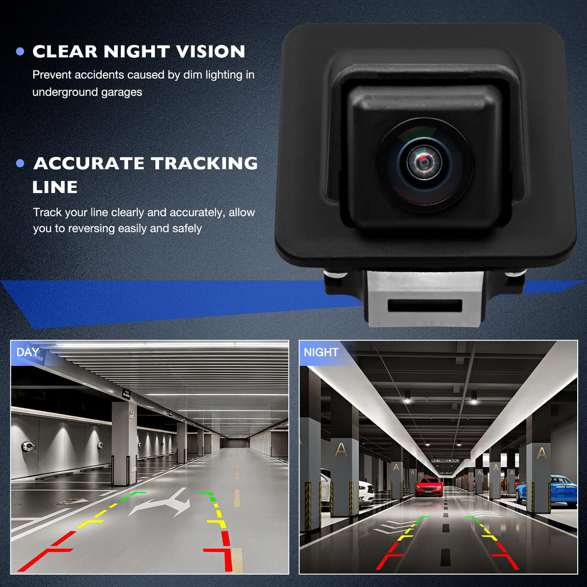 Q: What are the key features of this backup camera?A: Key features include HD color imaging, precise tracking lines that follow the steering wheel, a wide 130° viewing angle, IP68 waterproof rating, and easy installation with a factory-style connector.