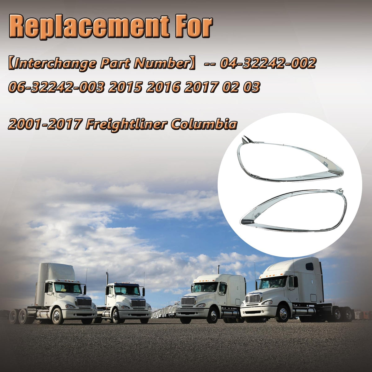 Baclaugh Chrome Headlight Bezel Trim Driver + Passenger Replacement For Freightliner Columbia 01-17