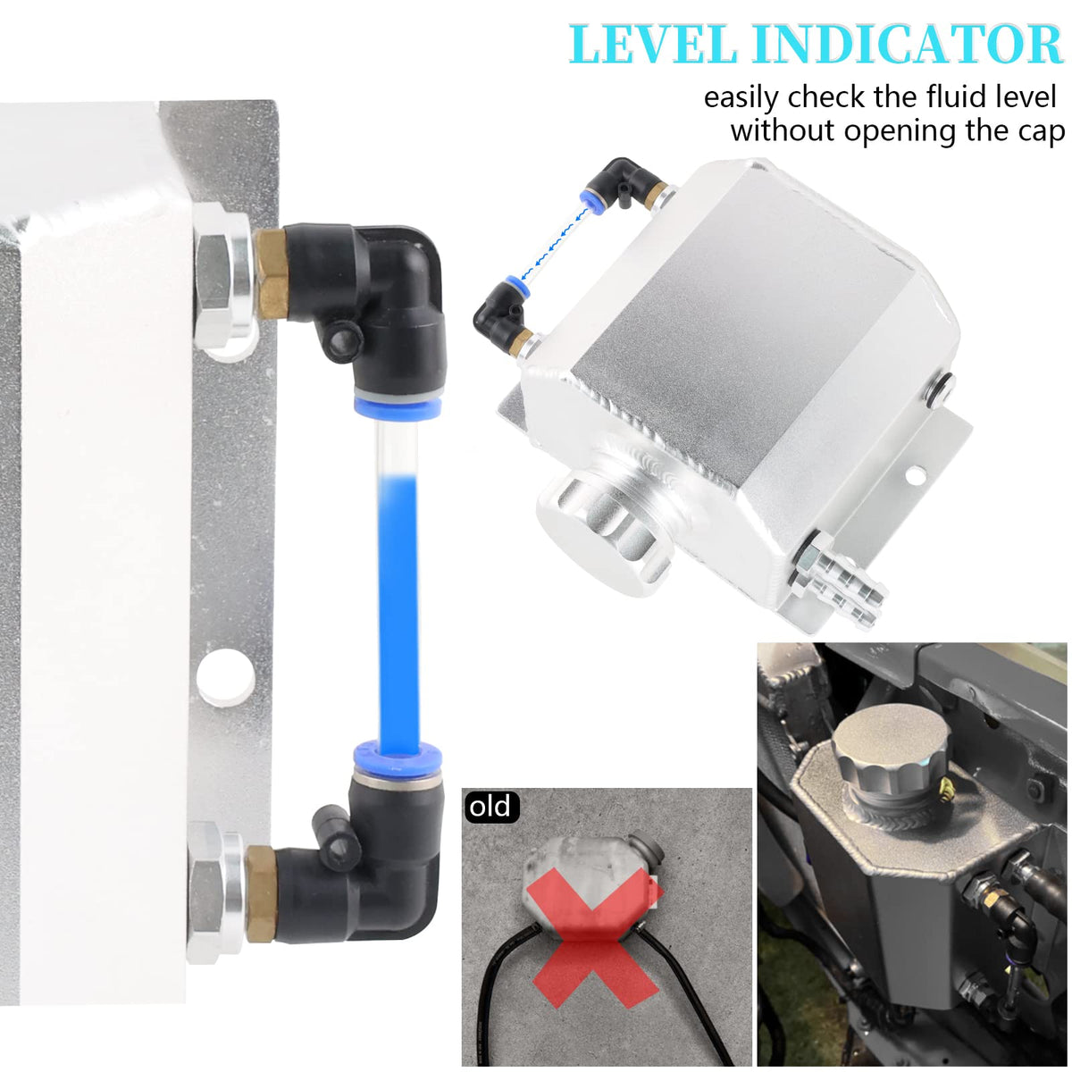 Q: Can the level indicator and inlet/outlet be adjusted?A: Yes, the BAGARAATAN coolant reservoir features a switchable level indicator that can be positioned on either the right or left side of the tank. Additionally, the inlet and outlet can be configured in multiple ways, allowing for versatile installation options depending on your vehicle's setup.
