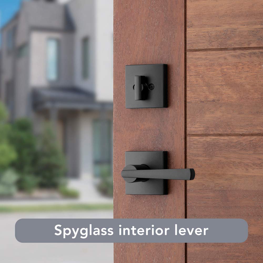 Baldwin Spyglass , Front Entry Handleset with Interior Lever, Featuring SmartKey Deadbolt Re-Key Technology, in Matte Black