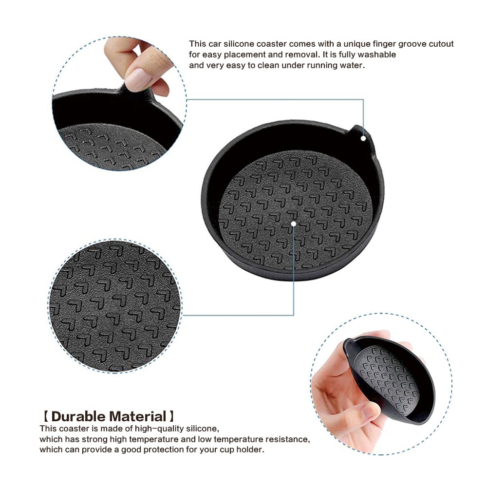 Banseko 4 Pack Silicone Car Cup Holder Coasters, Universal Removable Vehicle Cup Holder Coasters for Most Cars, Trucks (Black)