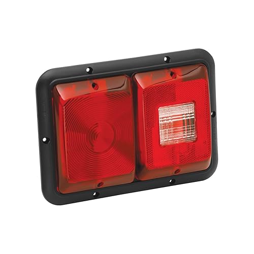 Q: What are the main features of the Bargman 34-84-008 Tail Light?A: The Bargman 34-84-008 Tail Light features dual lenses for stop, turn, tail, and backup functions. It includes a solid red lens and a clear backup light lens with a Class 'A' red reflex lens border, ensuring high visibility. The light is designed for horizontal mounting with a black recessed base and 6 secure screw holes, ensuring durability and reliability.