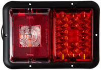 LED double lights for either vertical or horizontal mounting. Radius corners. Black, white and colonial white bases. Clear LED or incandescent backup light lenses are surrounded by a Class 'A' red reflex lens. Incandescent lens, red w/red insert, is for clearance/side marker application only. All lenses meet FMVSS/CMVSS 108 requirements. Prewired (supply and ground) for easy installation.