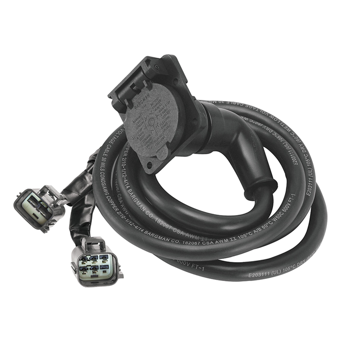 Q: How long is the cable included with this adapter?A: The Bargman 54701-007 Adapter comes with a 7-foot long cable, providing ample length for installation in various configurations and setups.