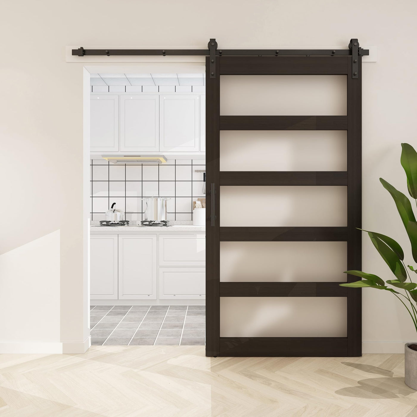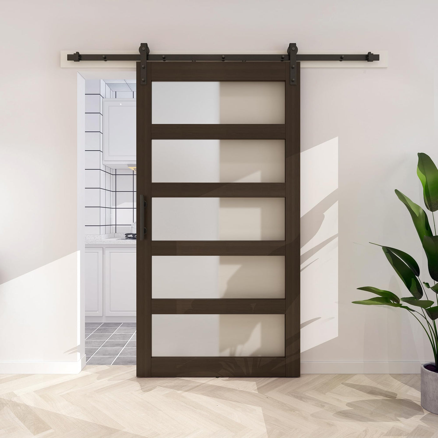 barnsmith 42in x 84in sliding glass barn door with hardware kit included 5 Panel glass barn door slide door and hardware included solid wood slab brown frosted glass pantry door french door interior door glass door sliding door