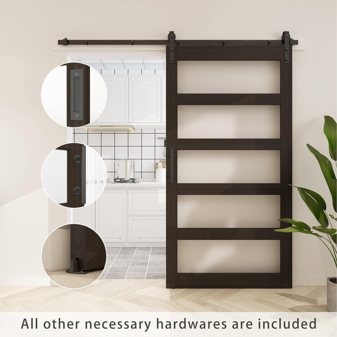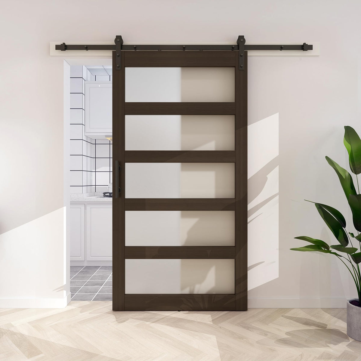 Barnsmith 42In X 84In Glass Barn Door With 7Ft Sliding Door Hardware Kit Included & Handle,5-Panel Frosted Glass Solid Wood Slab With Water-Proof Pvc Surface,Pre-Drilled Easy Assembly,Brown