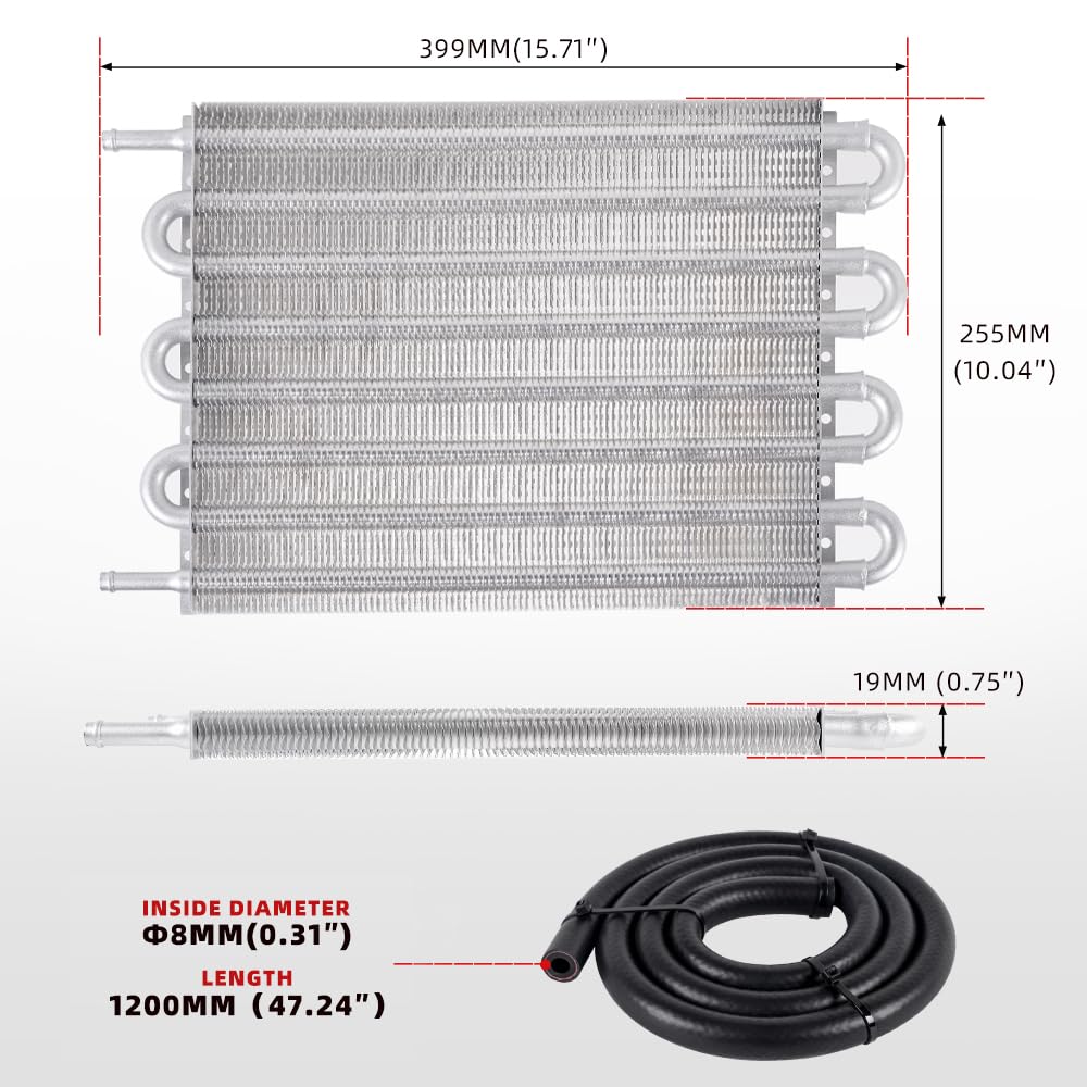 Bartoo Universal 5/16'' Transmission Oil Cooler Kit, Aluminium Alloy 8 Pass Tube And Fin Oil Cooler Kit (Sliver)