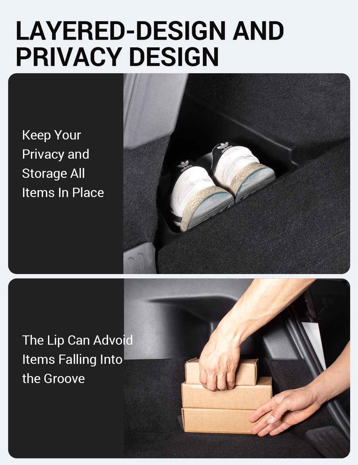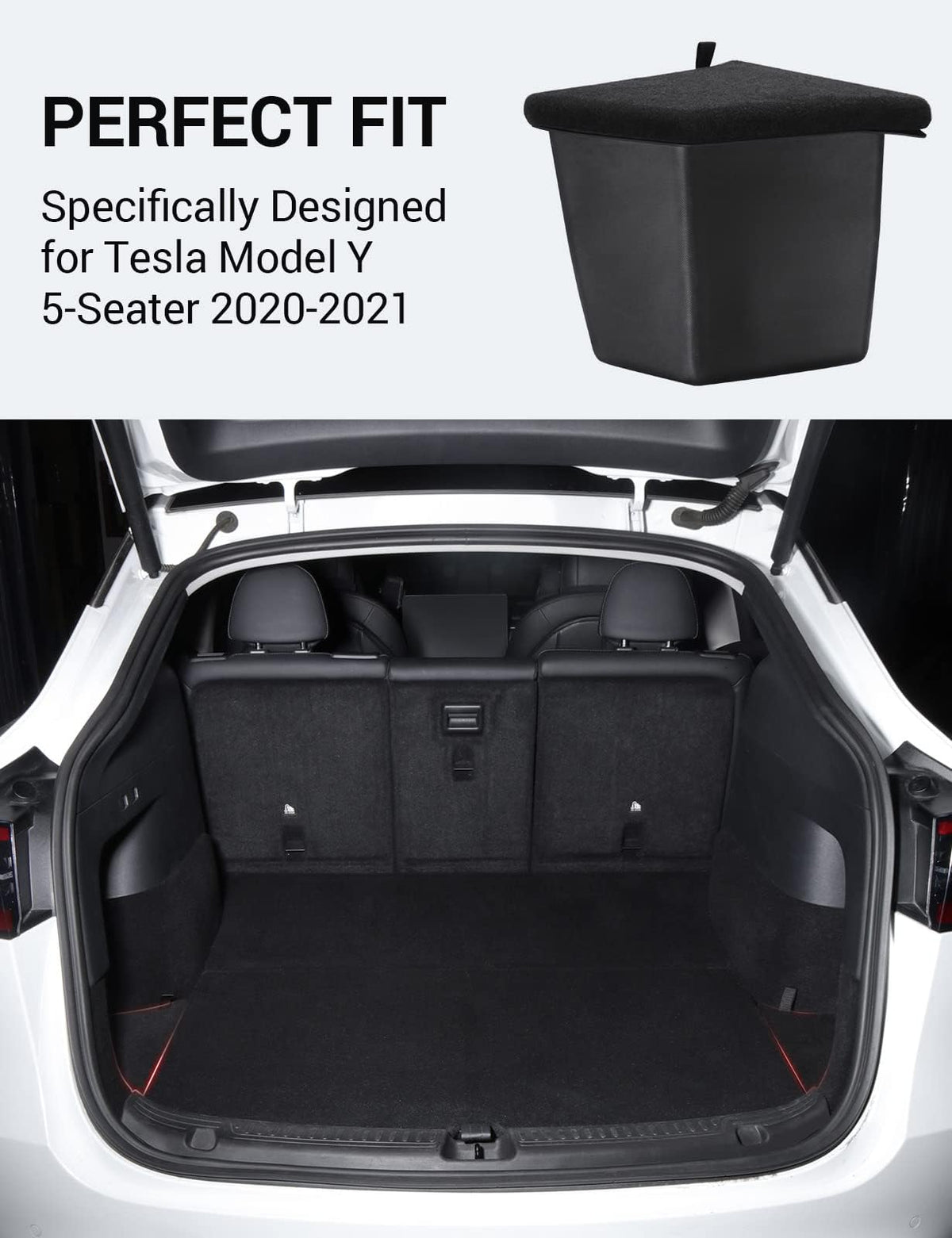 Basenor 2020 2021 Tesla Model Y Trunk Organizer, Waterproof Rear Trunk Storage Bins Side Box With Carpeted Lip Interior Accessor