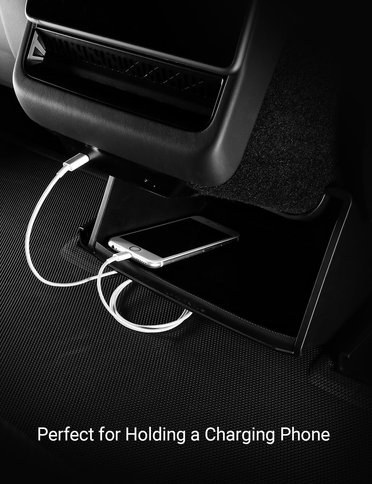 tesla model 3 accessories of model 3 rear storage with BASENOR 's Gen 2 Patent Design rear seat storage box. Expertly tailored for the 2024 2025 Model 3 Highland, it seamlessly integrates under the rear exhaust port, enhancing both storage and aesthetics. The anti-slip lid cover ensures secure storage for essentials, while the luxurious non-toxic TPE material safeguards against scratches and noise. Effortless installation, compatibility with mats, and versatile storage capabilities make it the perfect addition to a refined and organized interior.