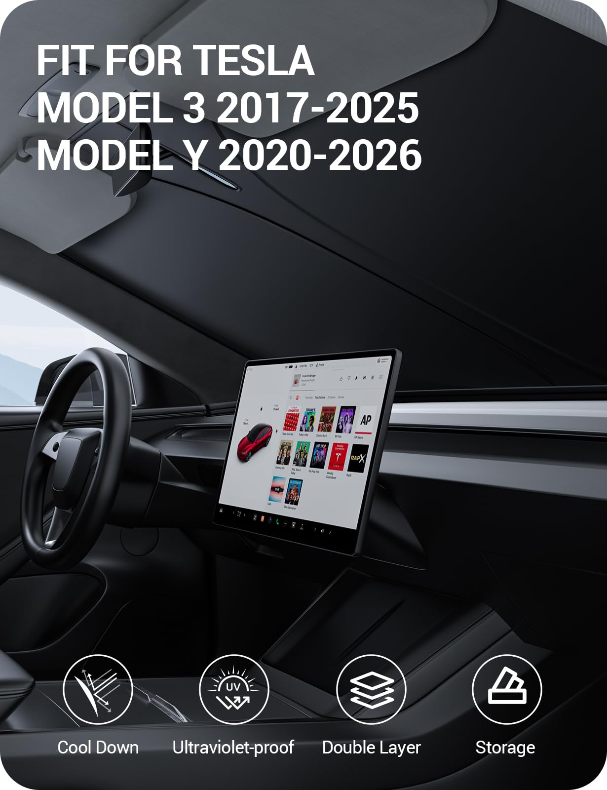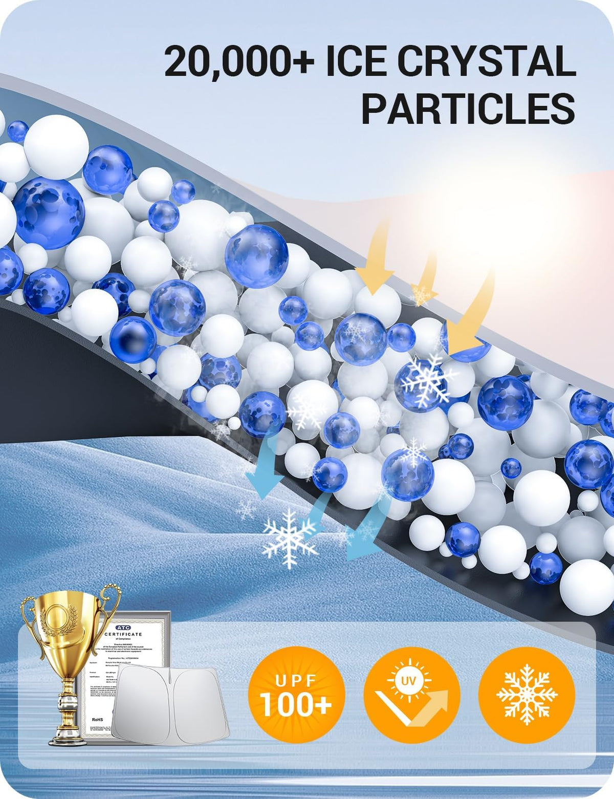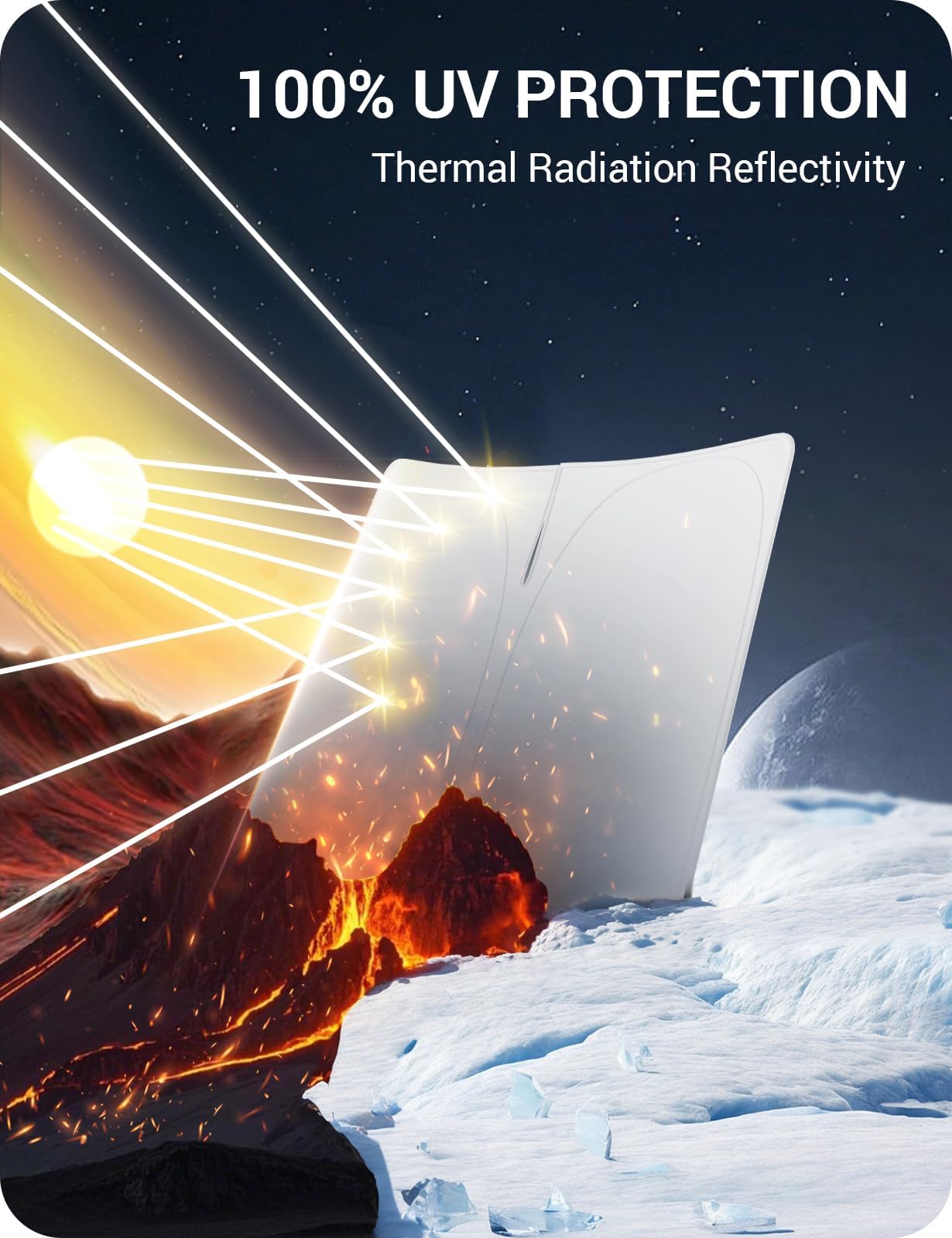 BASENOR Upgrade 2024 2025 Tesla Cybertruck Windshield Sunshade [Nano Ice Crystal Cooling] Folding Front Window Sun Shade Block U