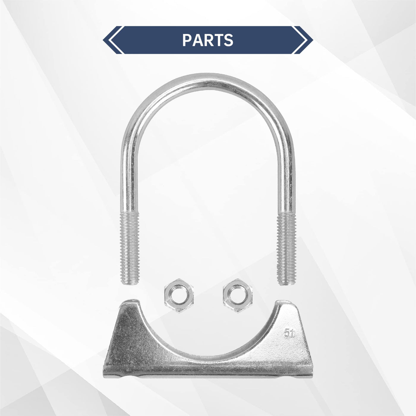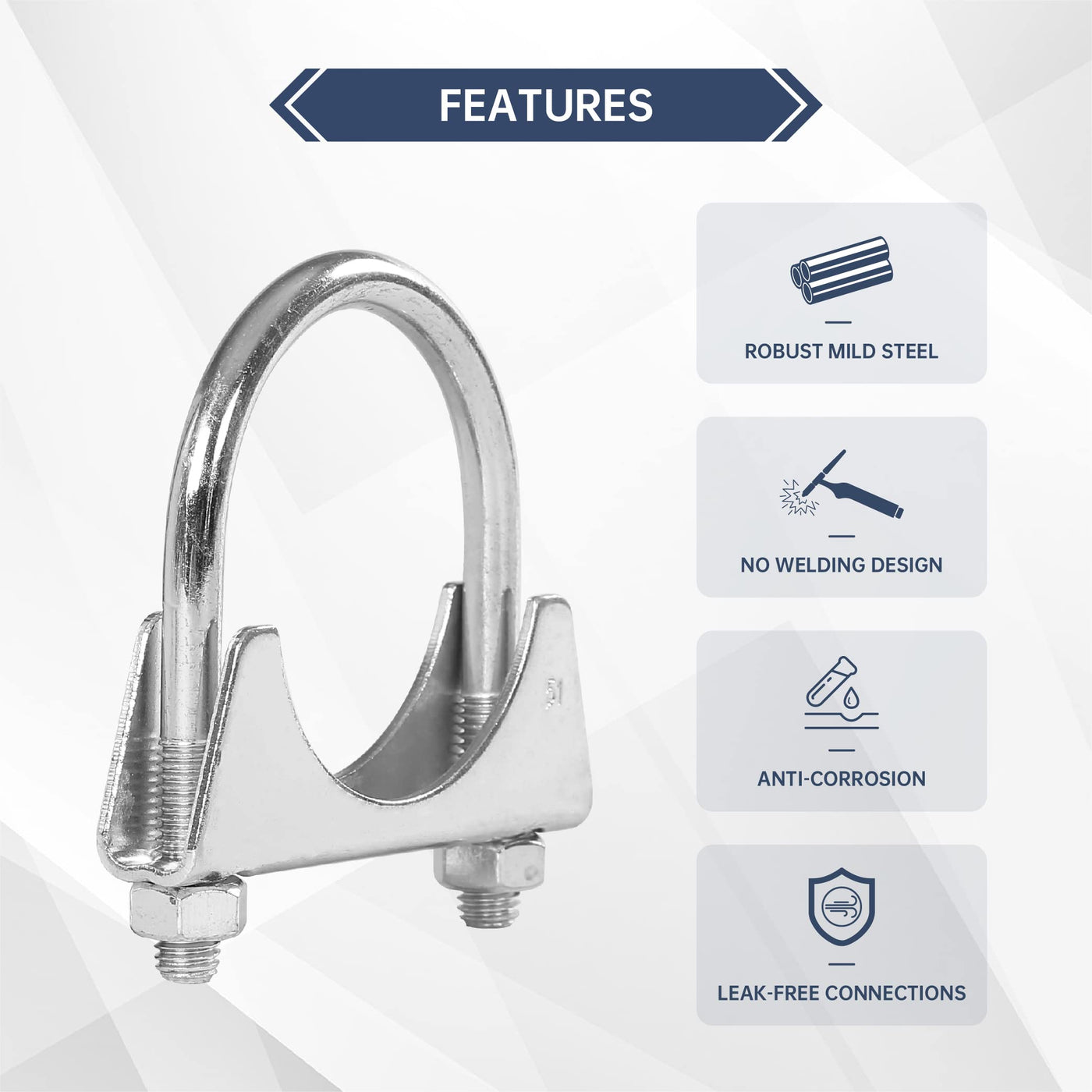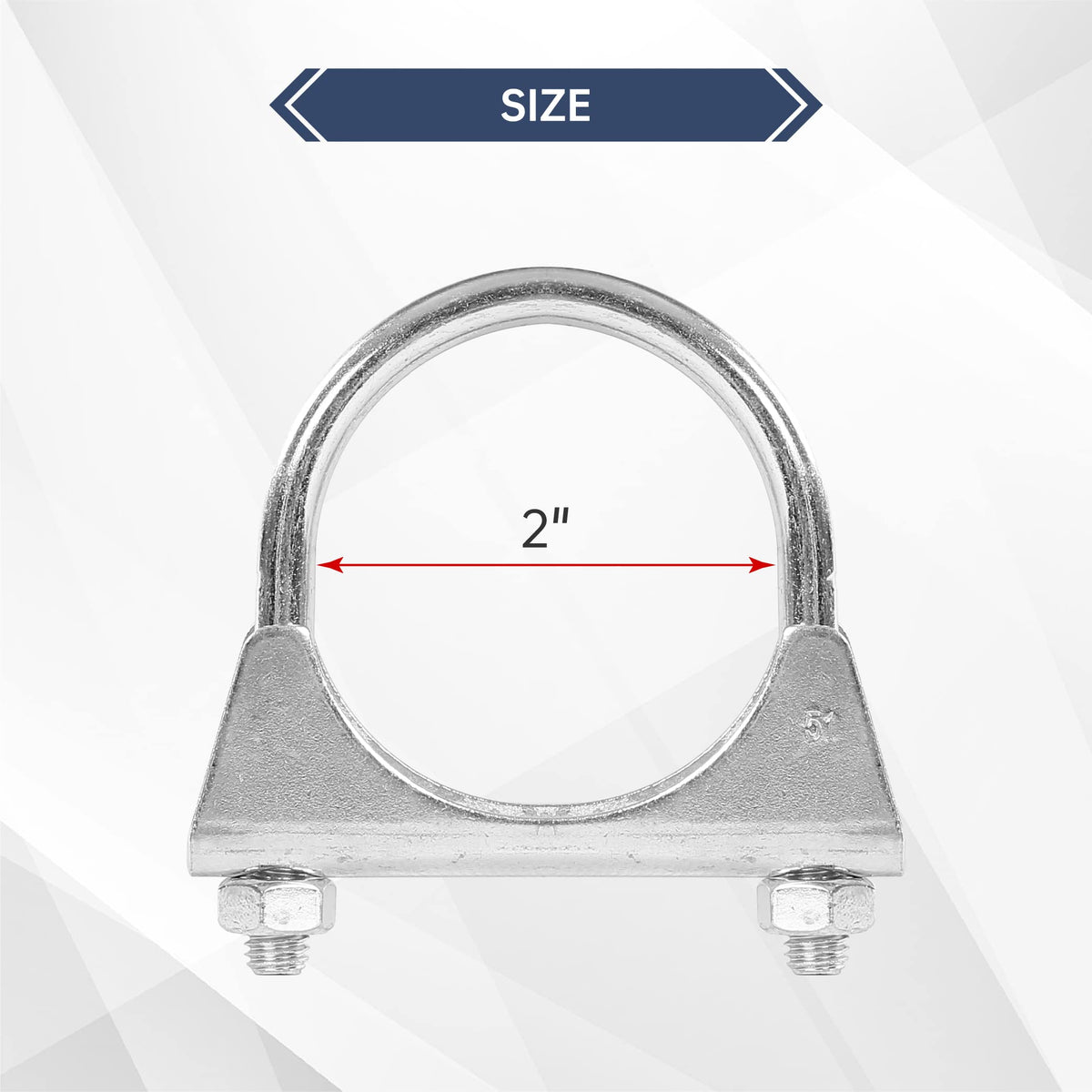 Q: What size pipe does the BATONECO U Bolt Clamp fit?A: The BATONECO U Bolt Clamp is designed to fit a 2-inch outer diameter (OD) pipe, making it ideal for exhaust pipes, muffler tips, and similar applications.