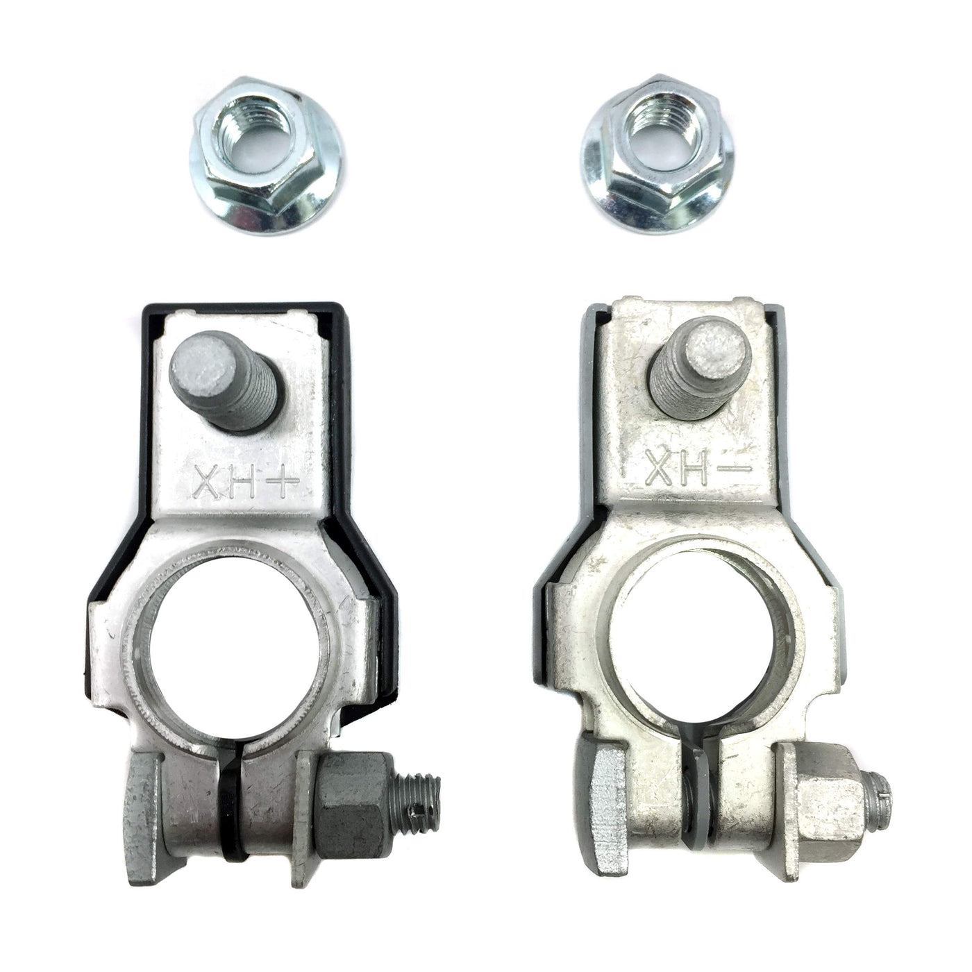Q: Do these battery terminals come with any additional components?A: Yes, the set includes one positive and one negative terminal assembly, each equipped with an M8 nut for secure attachment.