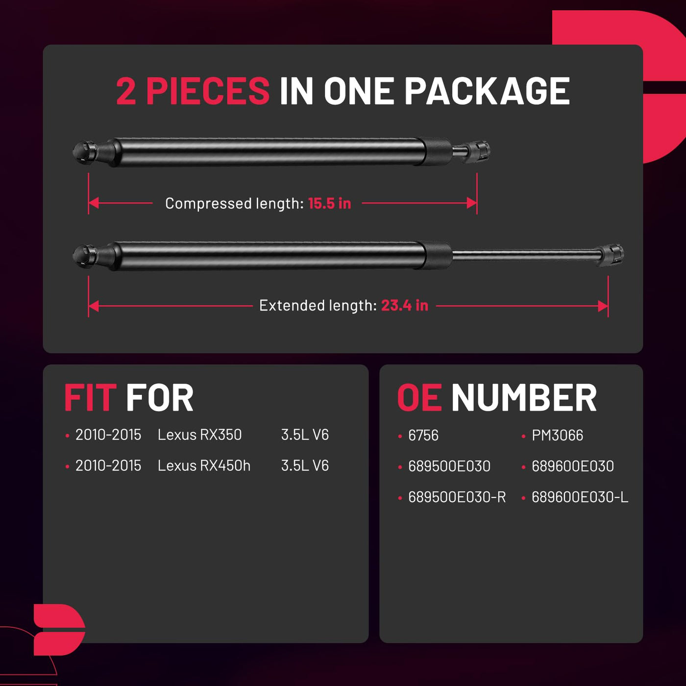 Compatibility: Specifically designed for Lexus RX350 (2010-2015) and RX450h. Matches OE part numbers: 6756, PM3066, 689500E030-R, 689600E030-L, ensuring reliability in fitment.