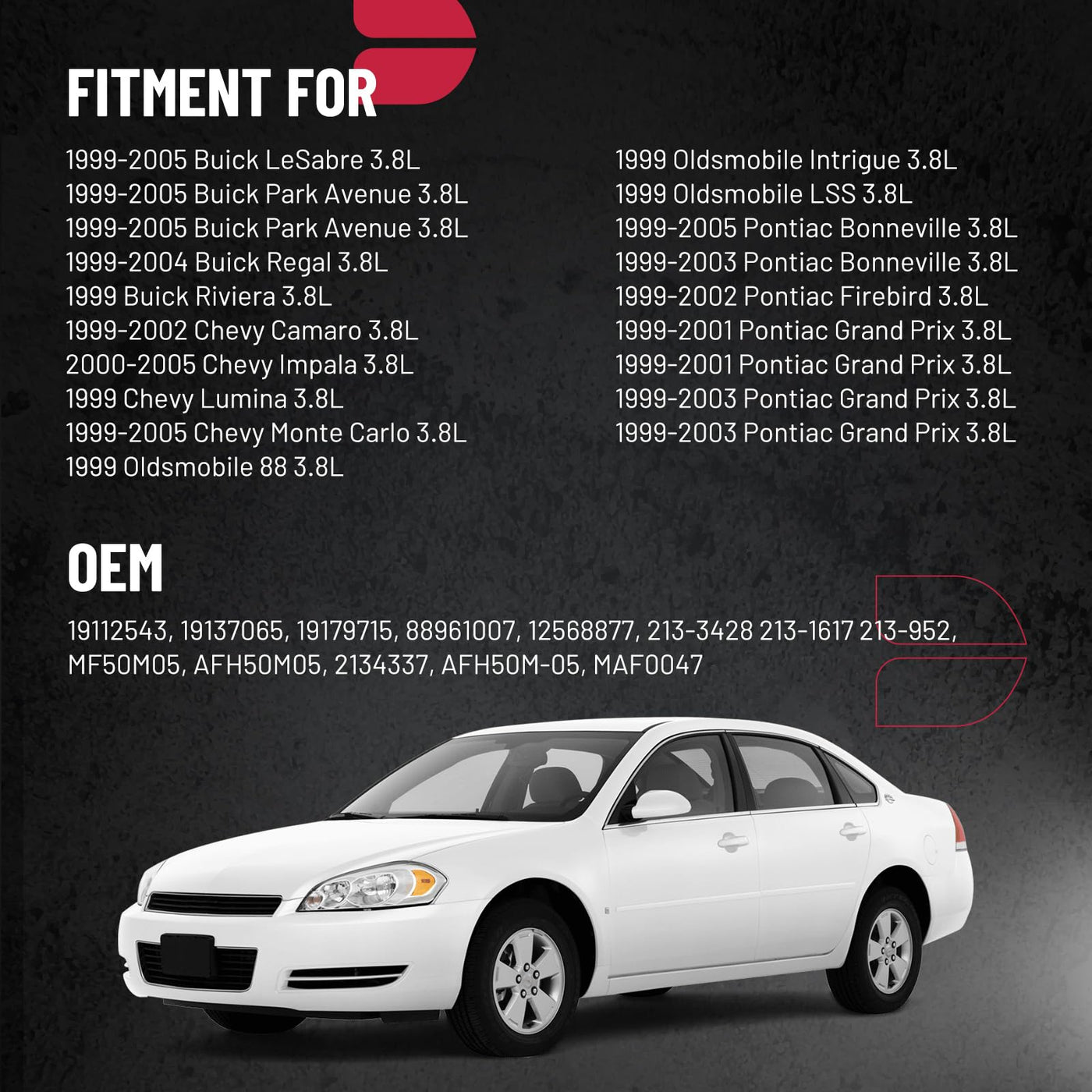 BDFHYK Mass Air Flow Sensor Meter MAF 213-3428 19112543 AFH50M-05 Compatible for Buick Oldsmobile Pontiac 3.8L, 1999-2005 Lesabr