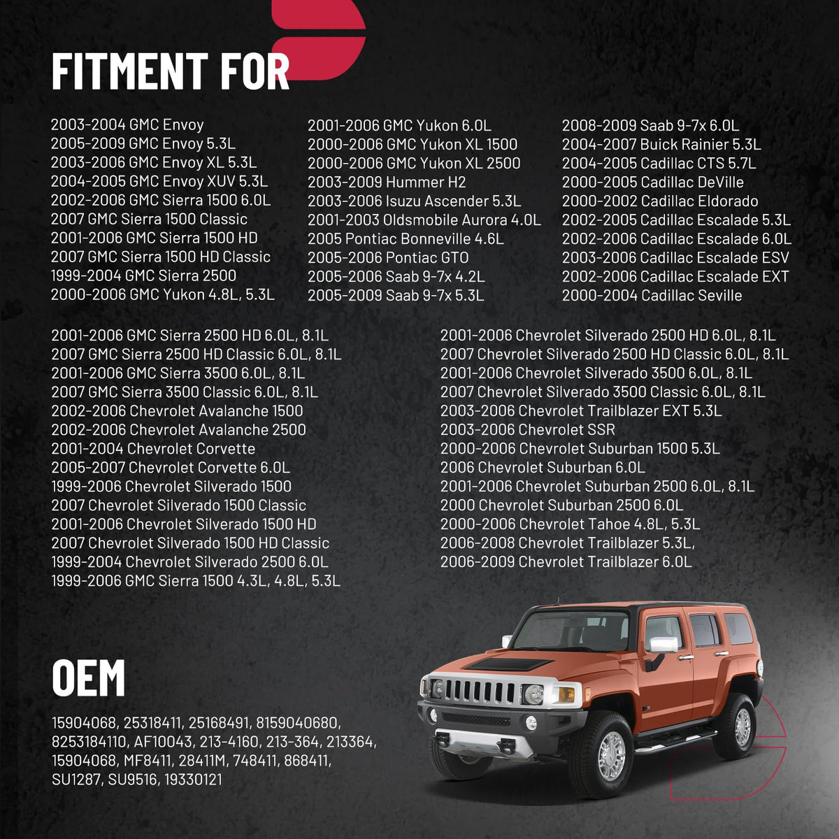 Q: What vehicles are compatible with the BDFHYK Mass Air Flow Sensor?A: The BDFHYK Mass Air Flow Sensor is compatible with a wide range of vehicles including 2004-2007 Rainier, 2004-2005 CTS, 2000-2005 DeVille, 2002-2006 Escalade models, 1999-2006 Silverado 1500, and many more. For a complete list, please refer to the product description.