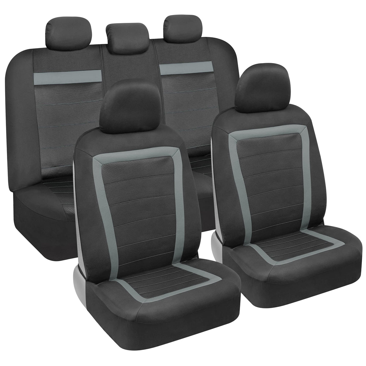 Bdk Carxs Freshmesh Car Seat Covers Full Set With Gray Accent - Mesh Front Seat Covers With Split Bench Back Seat Protector, Interior Covers For Auto Truck Van Suv