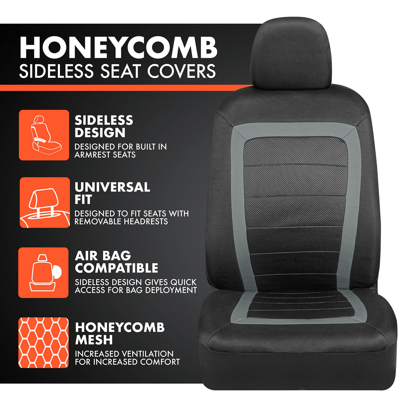 carXS FreshMesh Car Seat Covers Full Set with Gray Accent - Front and Back Seat Covers for Cars, Modern Sideless Design, Universal Fit Automotive Seat Covers Truck Van SUV