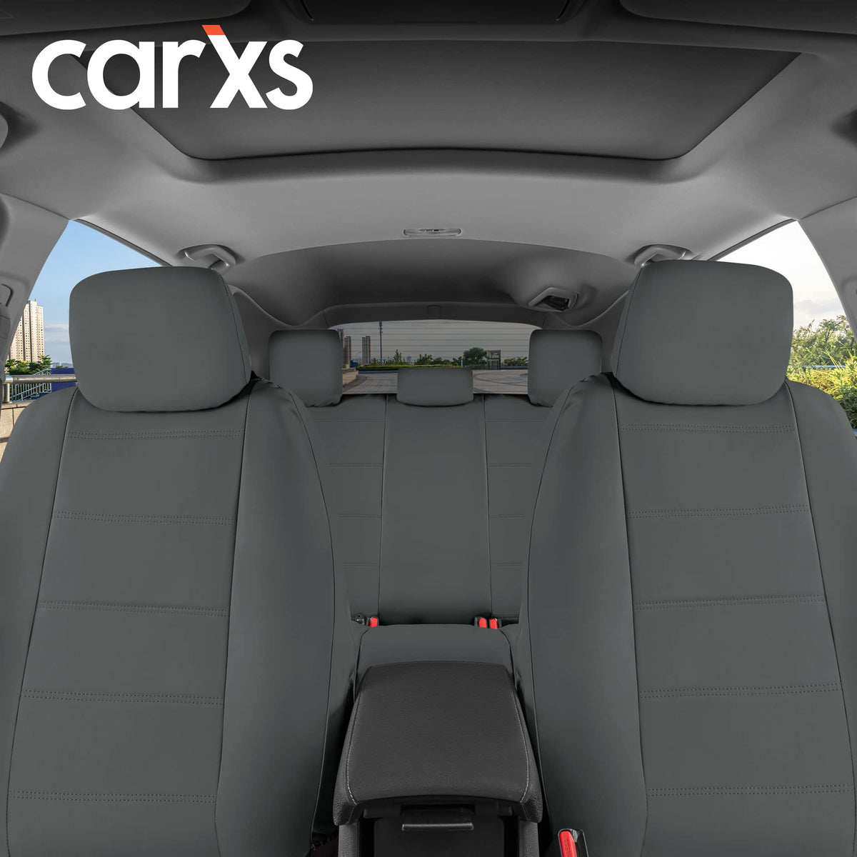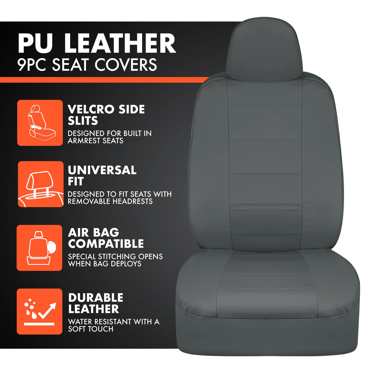 BDK carXS Gray Leather Car Seat Covers Full Set, 9-Piece Faux Leather Seat Covers for Cars, Includes Front Seat Covers and Back