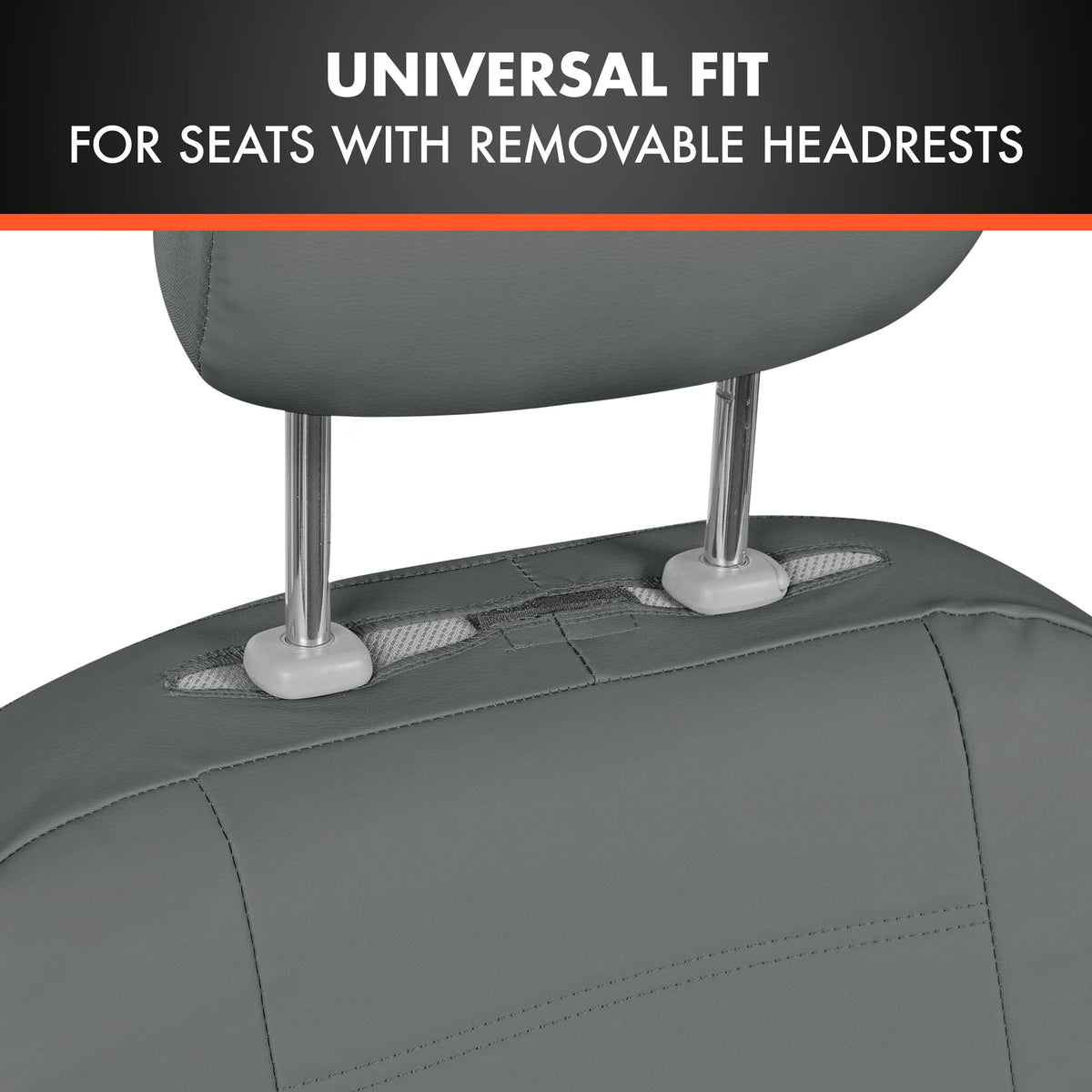 BDK Faux Leather Car Seat Covers Front & Rear Seat Full Set:The BDK Faux Leather Car Seat Covers full set offer a perfect blend of luxury, protection, and style for your vehicle's interior. Designed with high-quality PU leather, these seat covers provide a sophisticated, faux leather finish that gives your car, truck, van, or SUV a sleek, modern appearance. The color adds a touch of elegance while ensuring that your seats stay clean and protected from spills, dirt, and everyday wear and tear.These seat covers are specifically designed for vehicles with removable headrests, making them a perfect fit for most cars, trucks, vans, and SUVs. Whether youre looking to upgrade your vehicles aesthetic or keep your seats looking new for longer, these covers provide durable, long-lasting protection without compromising comfort. The soft faux leather material is not only easy to clean but also provides a comfortable seating experience for both drivers and passengers.The BDK seat covers are engineered to be simple to install, with a universal design that fits most standard automotive bucket seats. They are crafted to hug the contours of your seats for a tailored look and secure fit. Installation requires no special tools-just slip them on and adjust for a snug fit.In addition to their functional benefits, these seat covers help maintain the value of your vehicle by preventing stains, scratches, and fading caused by the sun. Whether you're dealing with pets, kids, or just everyday use, these covers provide a protective barrier that preserves your vehicle's interior for years to come.Upgrade your vehicles interior with the Motor Trend Faux Leather Car Seat Covers. Stylish, durable, and easy to maintain, these covers offer both comfort and protection for your front seats. Enjoy a fresh, clean look every time you step into your vehicle, no matter the weather or road conditions.