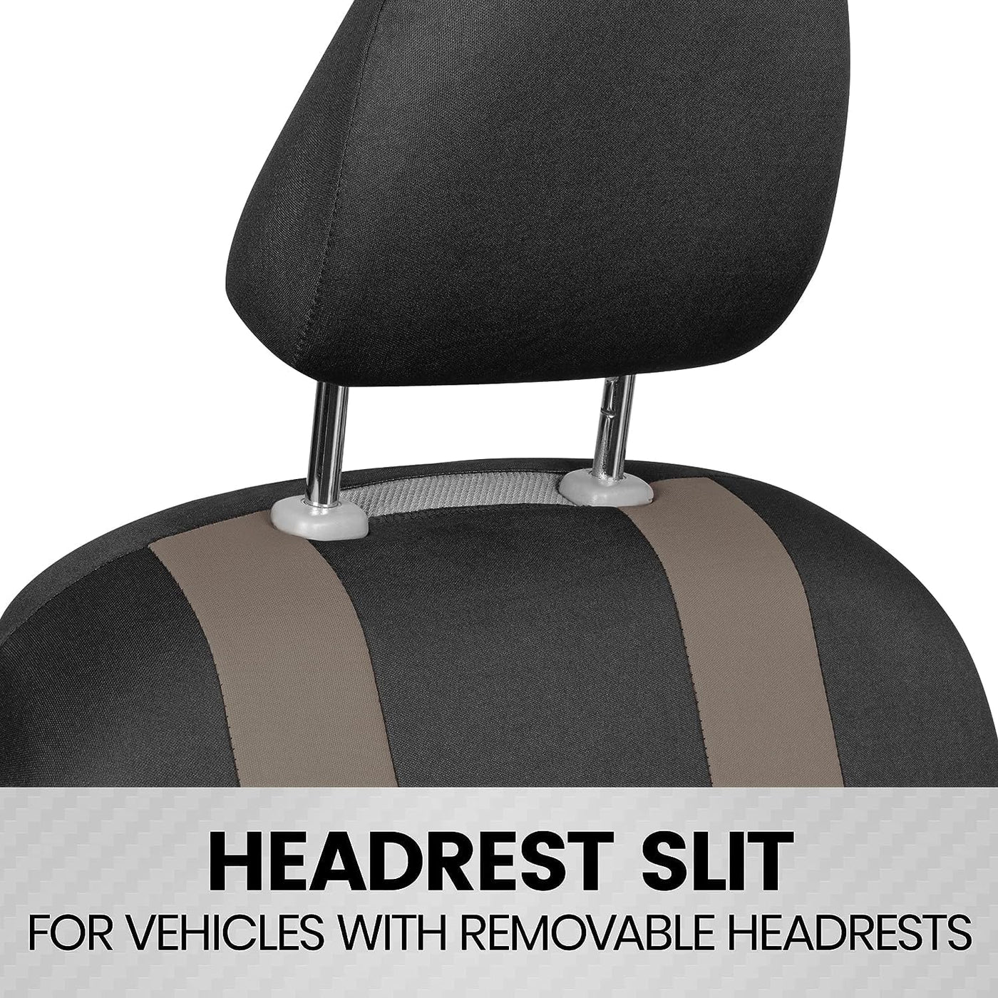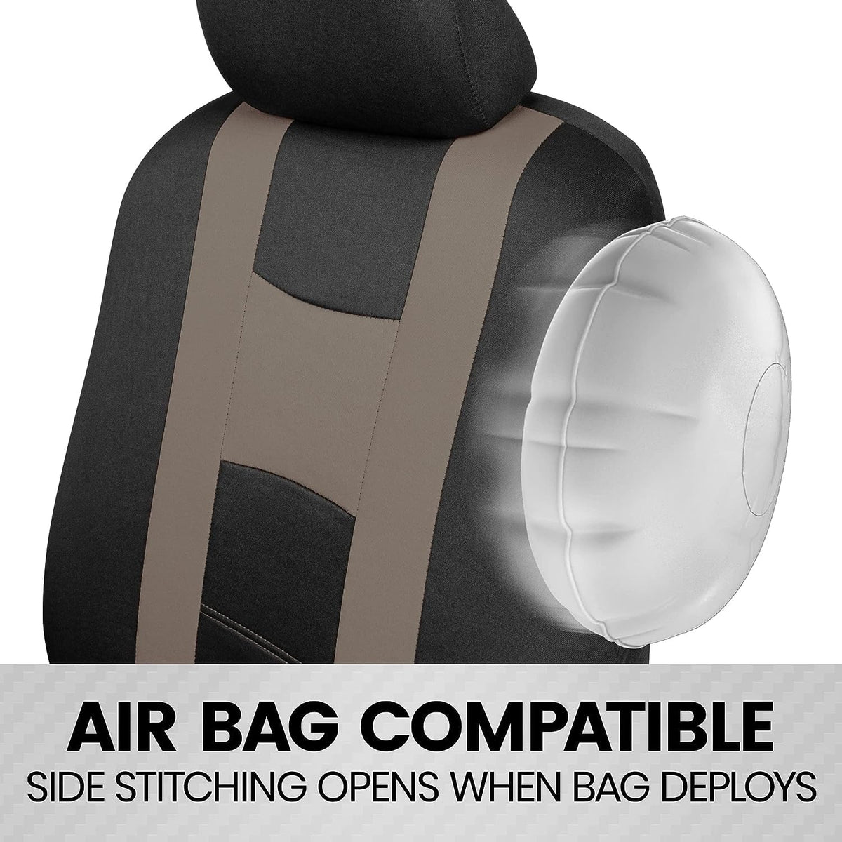 carXS Front Seat Covers for Cars with Matching Rear Bench Cover for Autos, Trucks, SUVs, and Vans:Upgrade your vehicle's interior with our Universal Fit 2-Tone Front Seat Covers. Designed to fit most cars, SUVs, trucks, and minivans, this set includes 2 front seat covers to enhance both style and protection. Whether you're refreshing your cars interior or adding an extra layer of defense, these seat covers provide the perfect solution.The stitched accents add a touch of sophistication to your interior, while the two-tone design complements any vehicle's aesthetic. Choose from classic neutrals or bold contrasts to elevate your vehicles look without sacrificing functionality.These covers offer a snug, customized fit for most vehicle seats. While designed for a universal fit, minor adjustments may be necessary for a flawless look in your specific vehicle.Crafted from durable poly-cotton material, these seat covers provide excellent protection against spills, stains, dirt, sweat, and everyday wear and tear. Keep your seats looking fresh and new with this high-quality cover set.Compatible with popular car and truck models including Ford (Explorer, Ranger, Escape, Expedition, Fusion, Lightning Mustang), Toyota (Tacoma, Rav4, Highlander, Prius, Tundra, Camry, Corolla), Chevrolet, Chevy Traverse, Dodge, Honda (Civic, Accord, CRV, Pilot, Odyssey, HR-V), Nissan (Sentra, Altima), Jeep, Tesla, Kia, Audi, Subaru Outback, Hyundai, BMW, Mercedes, Lexus, and more!