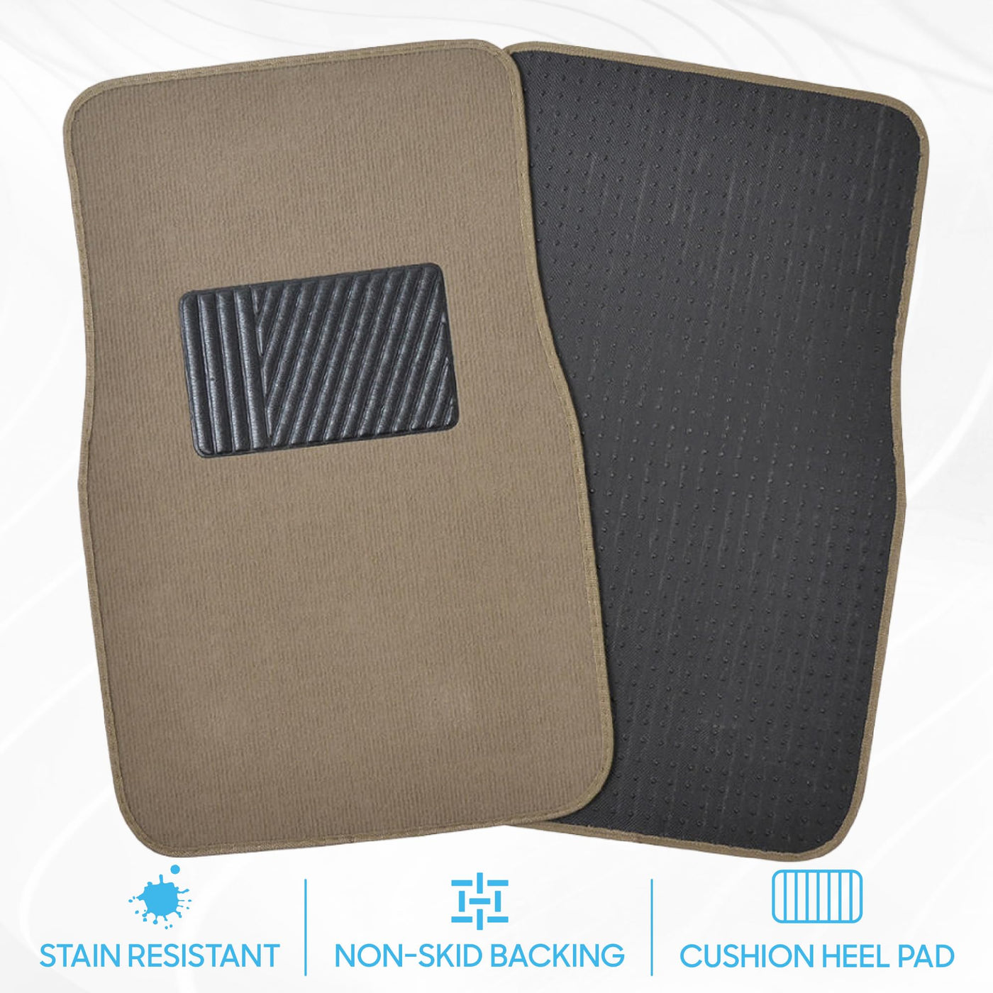 Bdk Classic Carpet Floor Mats For Car & Auto - Universal Fit -Front & Rear With Heelpad (Medium Beige) (Mt-100-Cptseries)