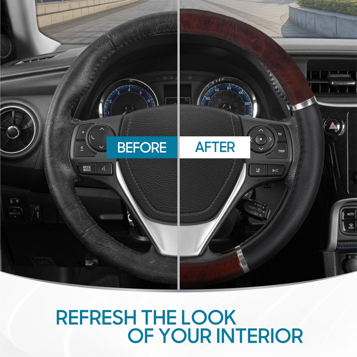 Decorate the interior of your car with our Wood style steering wheel cover. This classic design slips on easily and protects your steering wheel from dirt, dust, and oily finger